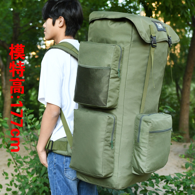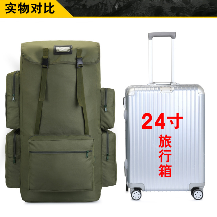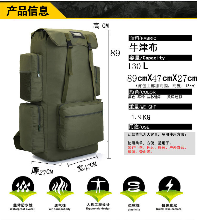 尺寸高 89cm(+扩展围15cm),宽 47cm,厚27cm ,约等同28寸拉杆箱。能装3条5斤左右的棉被。优质面料、配件、织带,品质扎实。用途打工带行李,搬家,多件露营装备,拉练 等等。