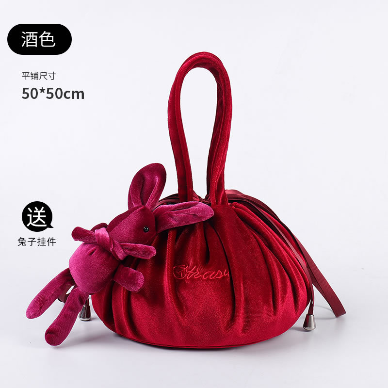• 플란넬 토끼 귀 게으른 메이크업 가방 버건디