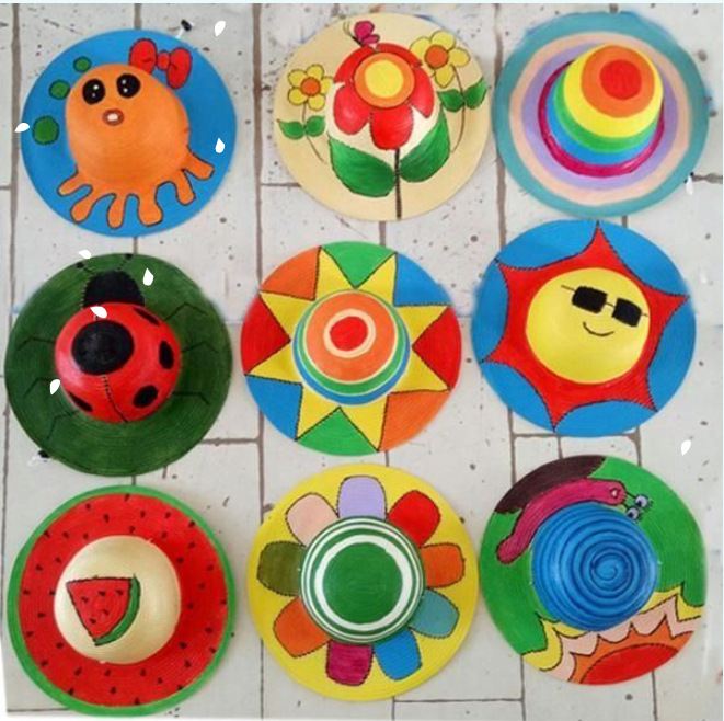 공장제작 페인팅 종이 밀짚 DIY 밀짚모자 색칠 봄 가을 여행 여름 캠프 학습 활동 용품 성인 및 어린이 수작업스토어 가기