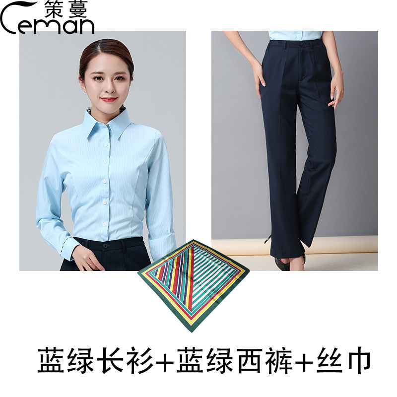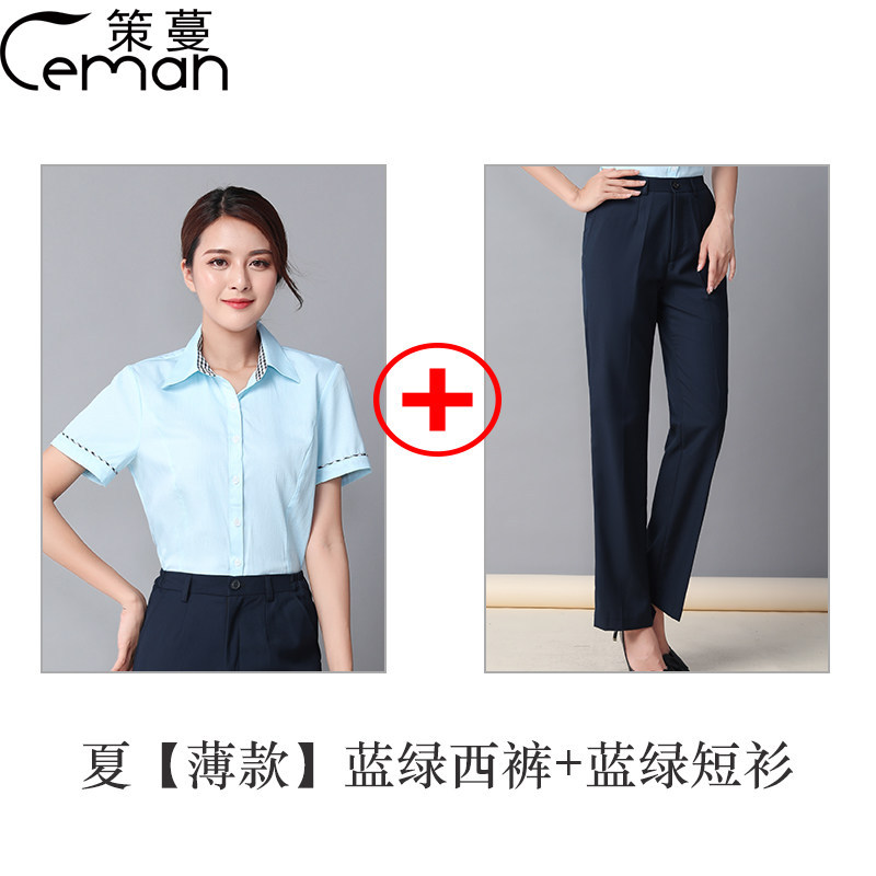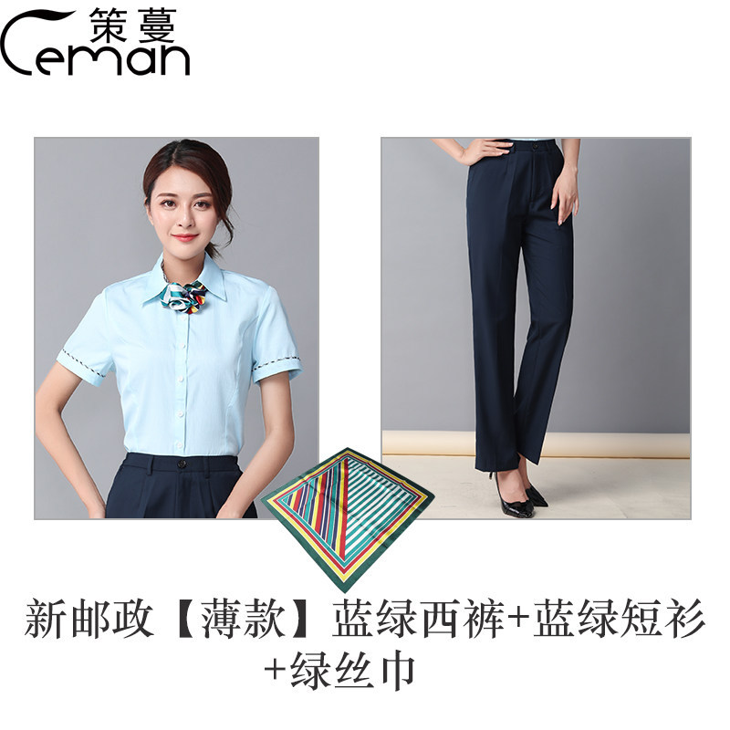 • 우편 파랑-녹색 [짧은 셔츠] + 여름 얇은 [파랑-녹색] 바지 여성