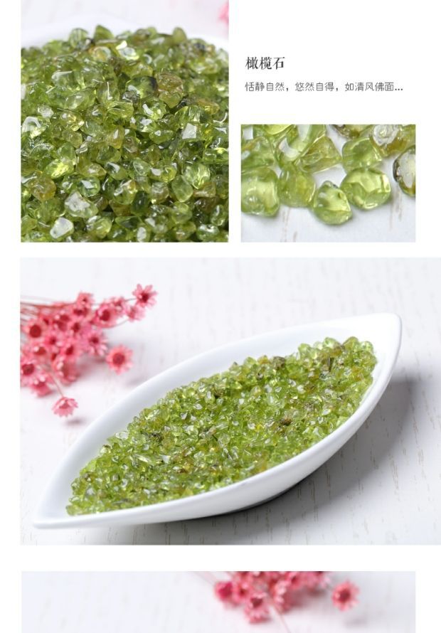 녹색 페리도트 자갈 천연 크리스탈 장식 꽃병 화분에 심은 수족관 풍경 기본 모래