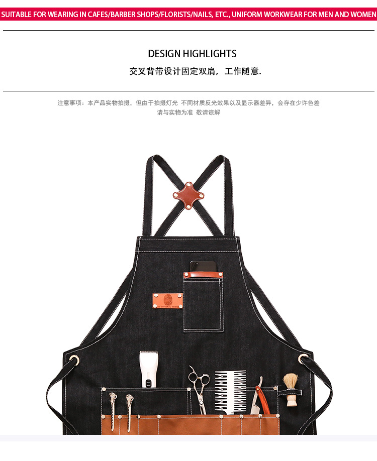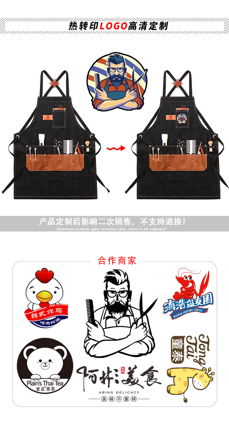 앞치마 이발사 남녀 헤어 스타일리스트 작업복 커피 우유 차 가게 파마 헤어 네일 툴링 인쇄 로고스토어 가기