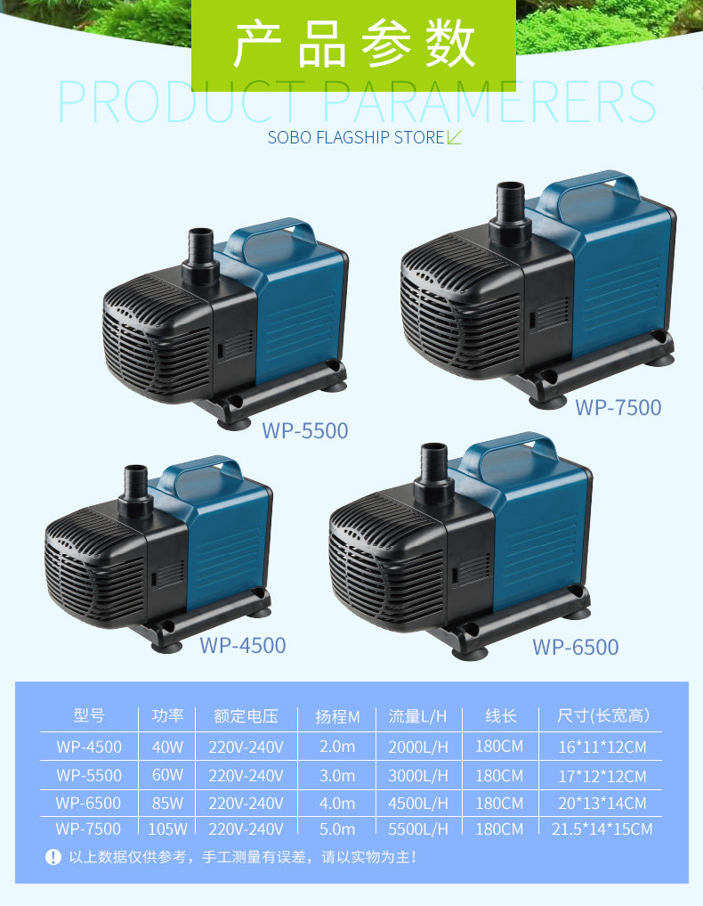 SEBO 송바오 하부 필터 어항 잠수정 펌프 물고기 연못 순환기 WP-5500 어류 양식 고출력 펌핑 필터 펌프스토어 가기