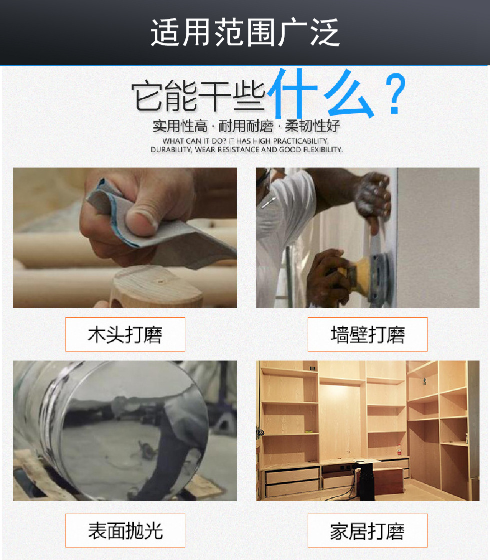 泛应用于钢琴、吉他、家具、橱柜、石材、地板、卫浴、自行车、钟表、不锈钢制品、眼镜、船舶、手机、电子、通讯工具、PCB线路板、橡胶鞋材皮革、塑胶五金、模具五金、金属制品等众多领域。为更好的配合广大客户的需求,始终汲取客户对产品品质及工艺技术所提的宝贵意见,努力研发,加以改善,全力打造研磨抛光材料一站式采购基地。客户的要求就是我们的目标,客户的满意就是我们的成功!我们将以经继续秉承质优.价廉诚信的原,真诚希望于您共同打造美好的明天。