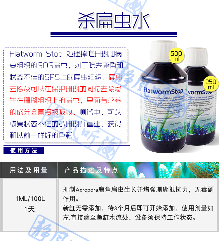 • Flatworm 죽이는 물 Flatworm 정지 500ml