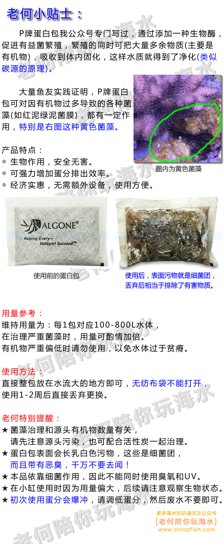 P 브랜드 단백질 패키지 조류 제거 패키지 어항 조류 조류 제거 유기물 제거 바다 탱크 수족관스토어 가기