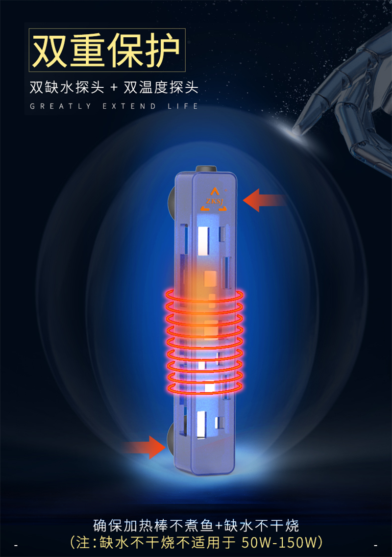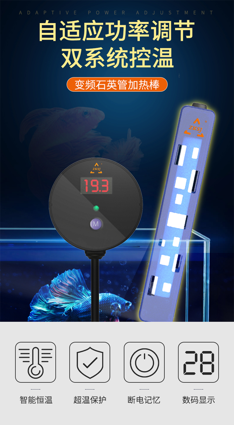 Zhongke 세기 새로운 물고기 탱크 가변 주파수 가열 막대 자동 일정한 온도 전기 가열로드 절전 온도 제어 전원 차단