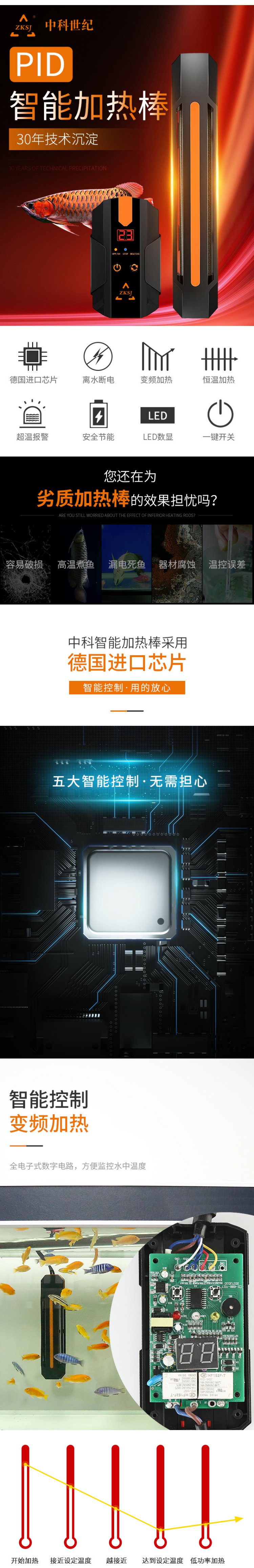 Zhongke 세기 새로운 물고기 탱크 가변 주파수 가열 막대 자동 일정한 온도 전기 가열로드 절전 온도 제어 전원 차단스토어 가기