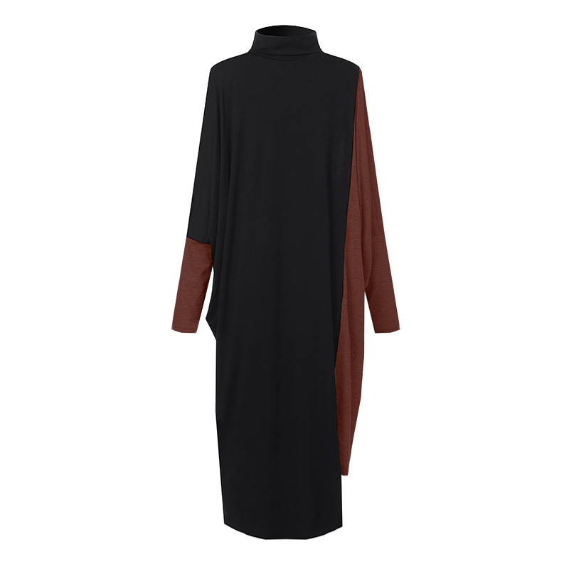 OL 기질을 가진 재고 스타 여성 콜라주 니트 중간 길이 원피스 긴 소매 높은 칼라 원피스 직접 공급스토어 가기