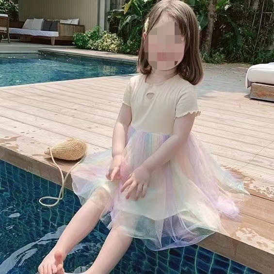 2023 새로운 소녀 여름 거즈 치마 작은 공주 서양식 투투 치마 아기 무지개 어린 소녀 원피스스토어 가기