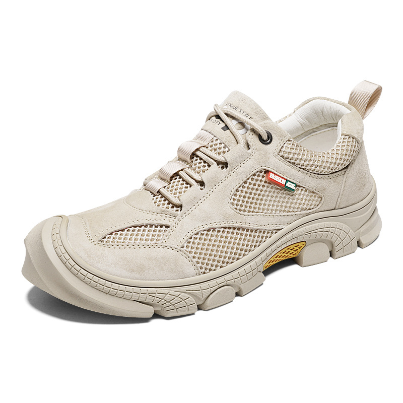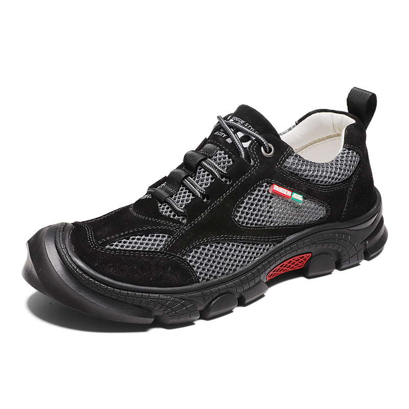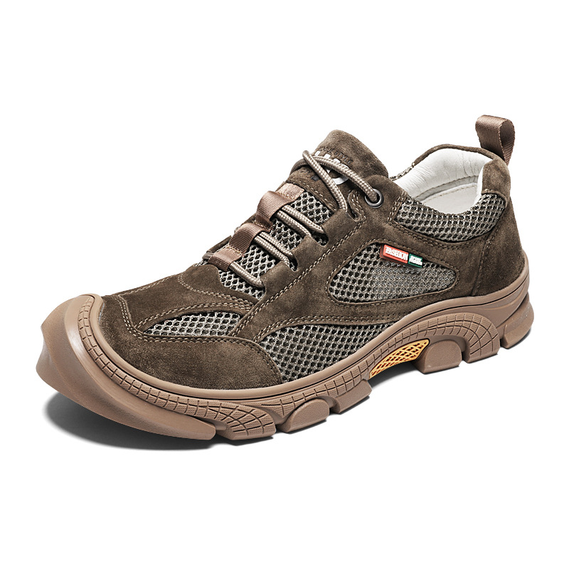 야외 하이킹 신발 남성용 플러스 사이즈 메쉬 통기성 캐주얼 툴링 신발 돼지 가죽 미끄럼 방지 로우 사이드 안티 킥 조수 신발 레이스 업스토어 가기