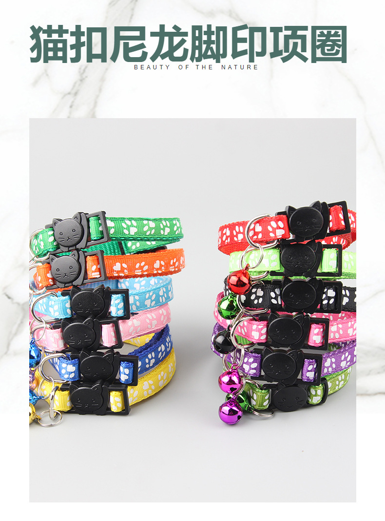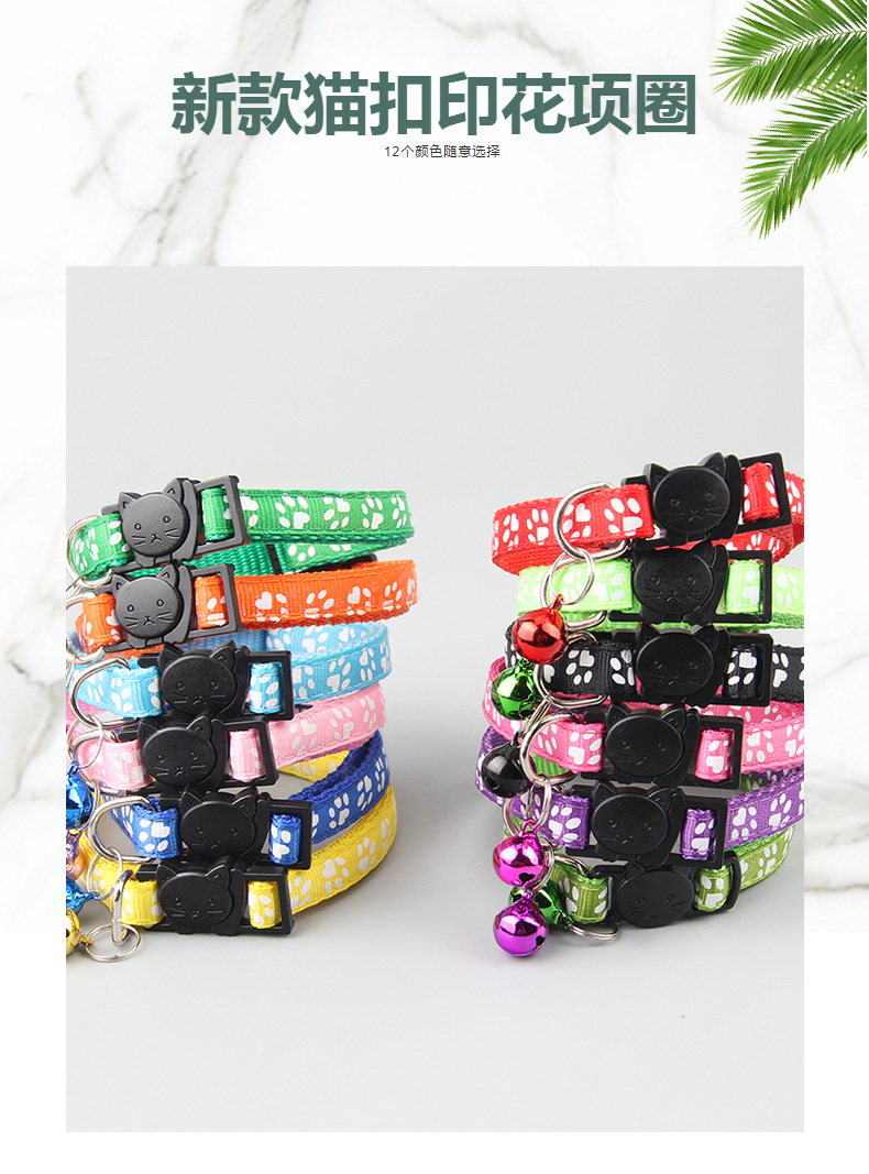 애완견 목걸이 발자국 나일론 새로운 고양이 버클 넥 링 인쇄 고양이 액세서리 아마존 크로스 보더 도매