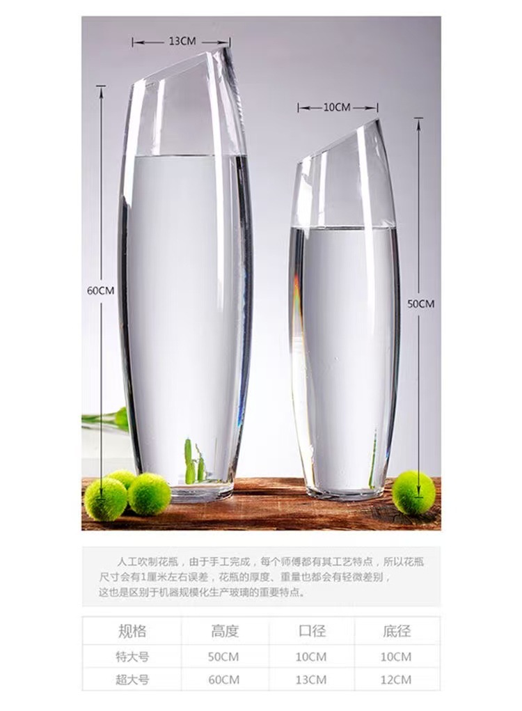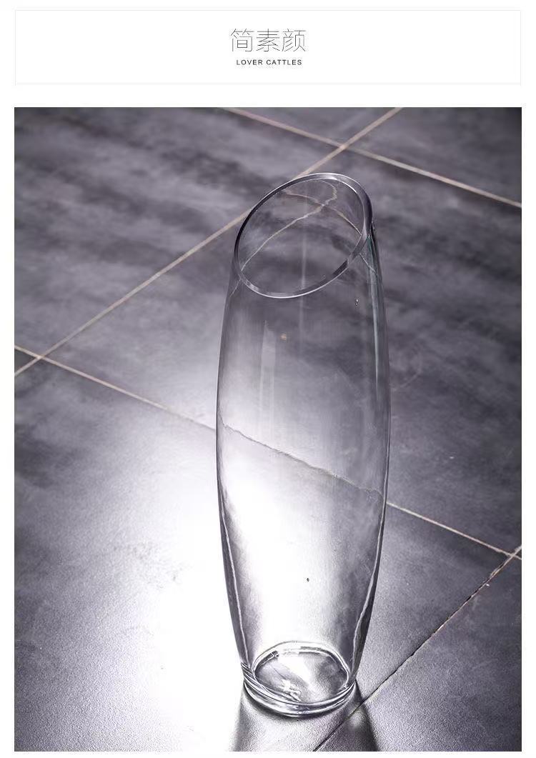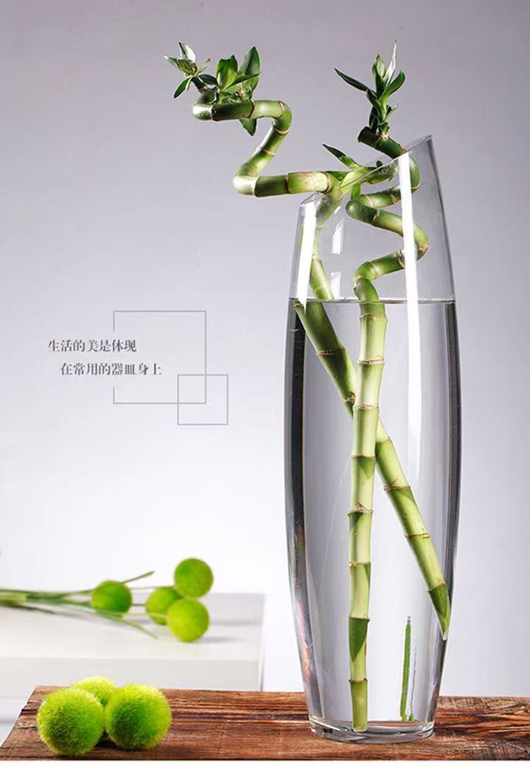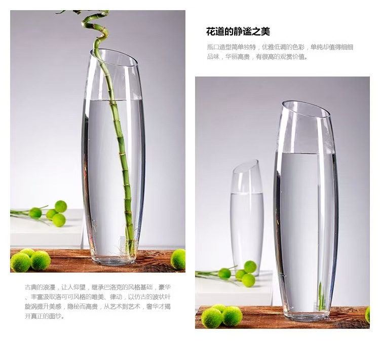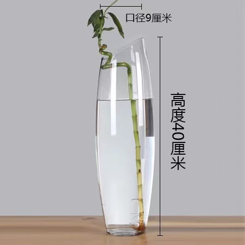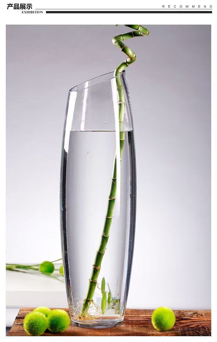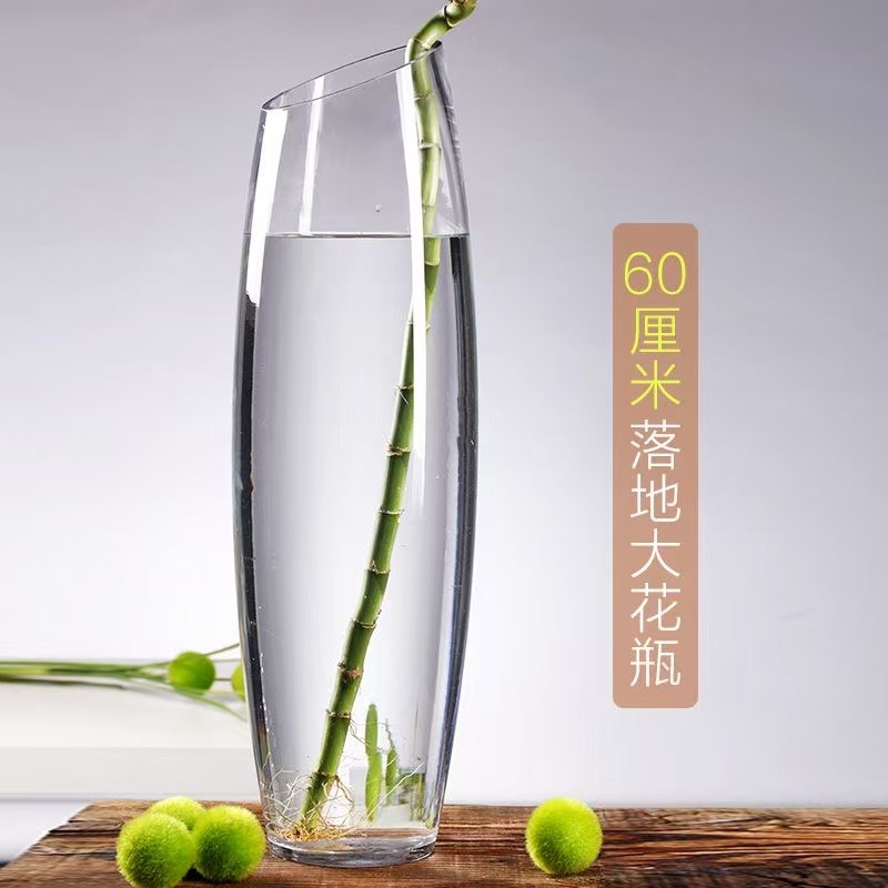 경사진 입구 꽃병, 심플한 유리 투명 바닥 장식품, 거실 식탁용, 수경재배 대나무, 장식용 꽃꽂이