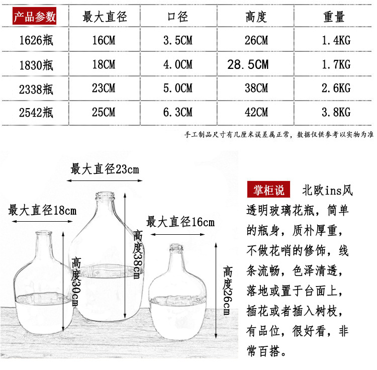[월간 매출 3000] 북유럽 작은 입 큰 배 병 교수형 시계 말 취한 우드 대형 스몰 사이즈 바닥 투명 유리 화병