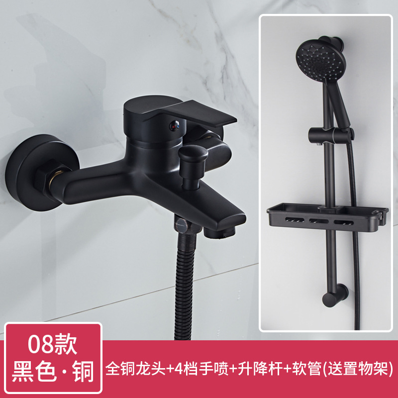 구리 샤워 세트 간단한 스프레이 헤드 핫 및 콜드 블랙 페인트 리프팅 비 샤워 욕실 세트 샤워 수도꼭지스토어 가기