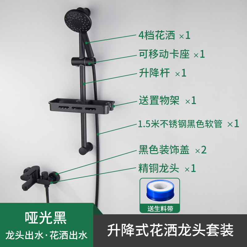 구리 샤워 세트 간단한 스프레이 헤드 핫 및 콜드 블랙 페인트 리프팅 비 샤워 욕실 세트 샤워 수도꼭지