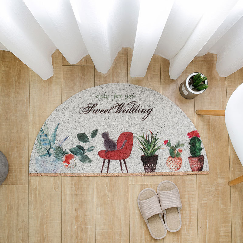헤어 엔트리 실크 링 매트 도어 거실 침실 욕실 PVC 홈 매트 실크 링 반원형 매트 세대스토어 가기