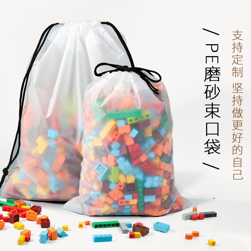투명 프로스트 PE 더블 드로스트링 가방 홈 여행 포장 가방 얼굴 수건 보관 가방 방수 인쇄 로고