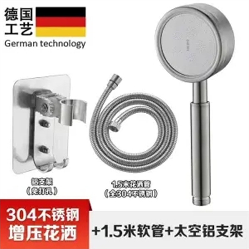• 천연 스테인레스 스틸 가압 샤워 헤드 + 1.5m 방폭 파이프 + 펀치 프리 베이스