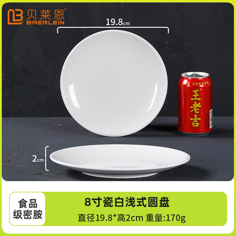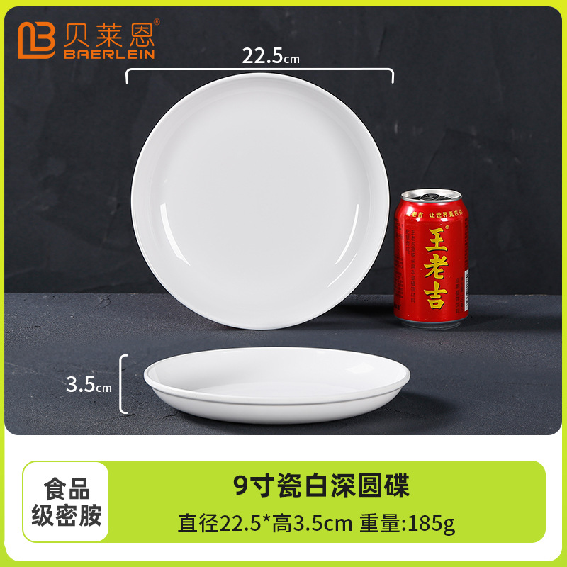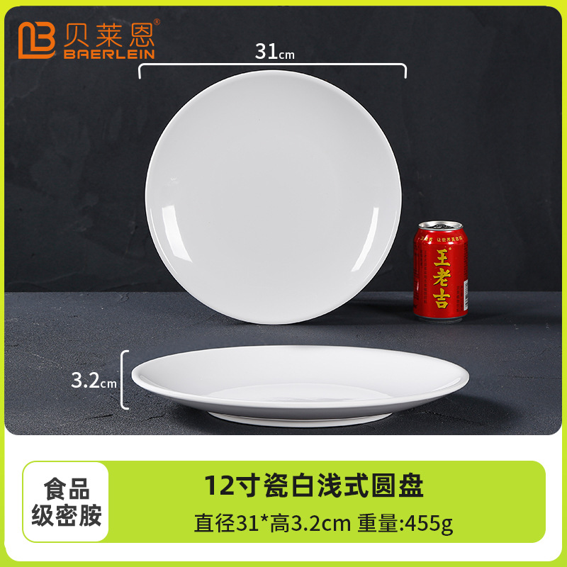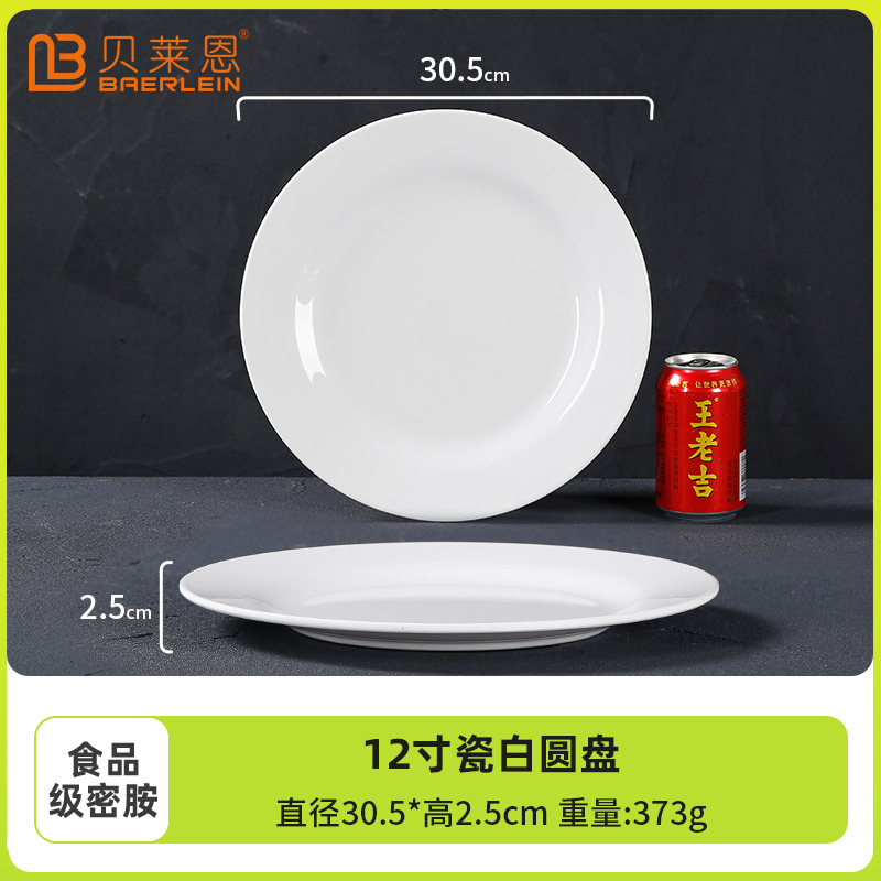 화이트 플레이트 멜라민 식기 디스크 플랫 플레이트 플라스틱 접시 디너 플레이트 서양 접시 상업 라운드 플레이트 도매스토어 가기