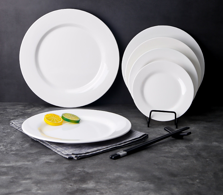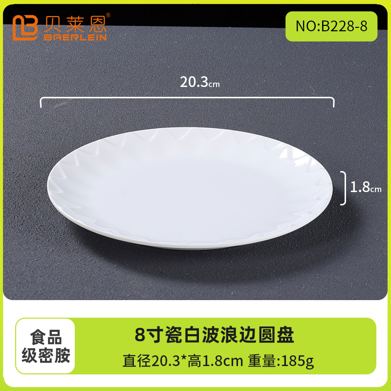 화이트 플레이트 멜라민 식기 디스크 플랫 플레이트 플라스틱 접시 디너 플레이트 서양 접시 상업 라운드 플레이트 도매