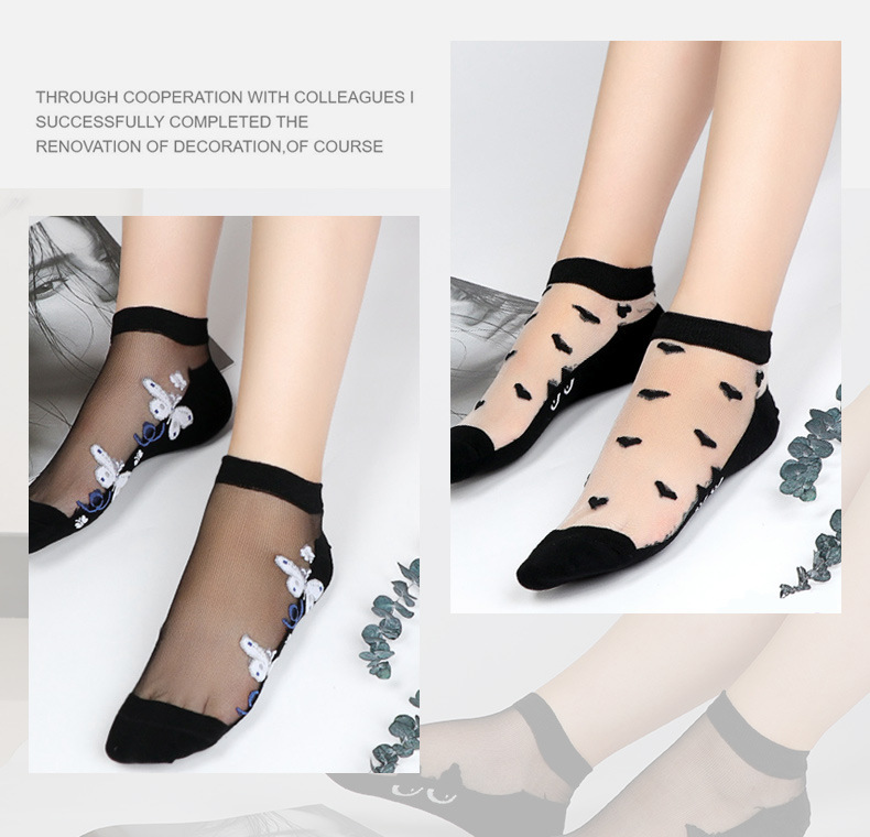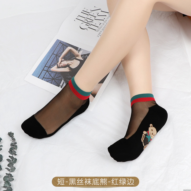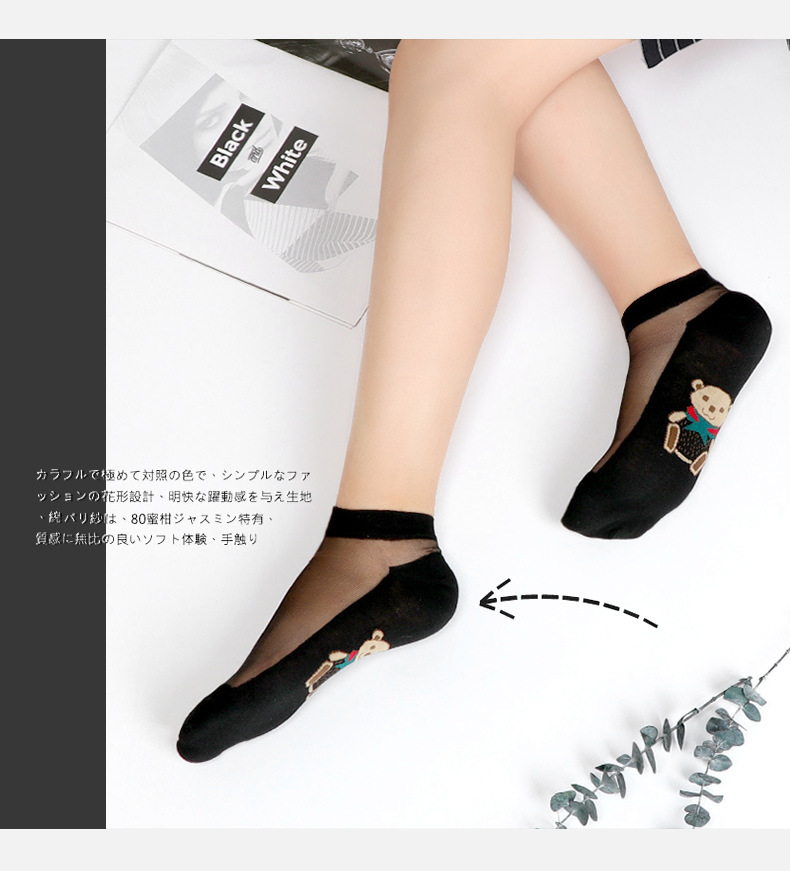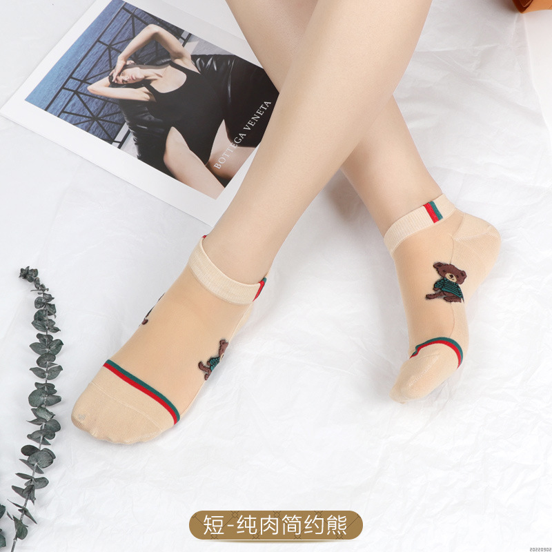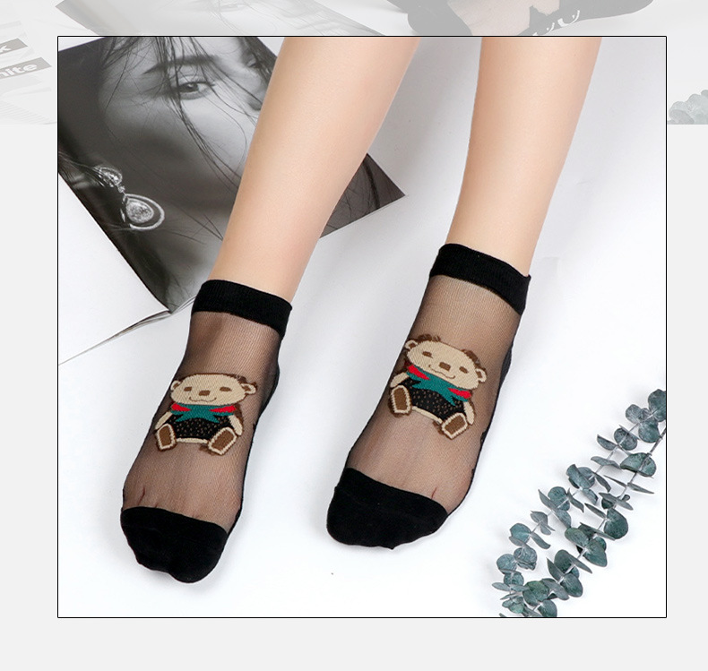 네스 양말 공장 여름 만화 곰 얕은 입 낮은 탑 짧은 튜브 면 바닥 보트 양말 투명 유리 크리스탈 스타킹
