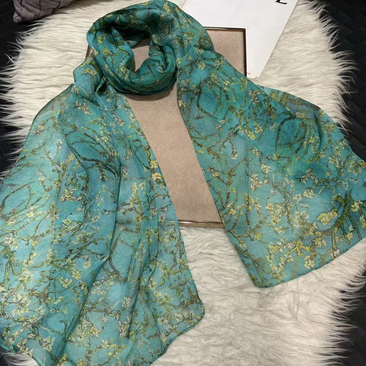 항저우 실크 쉬폰 스카프 뽕나무 실크 스카프 롱 스카프 에어컨 자외선 차단제 숄 비치 타올 여름 여성스토어 가기