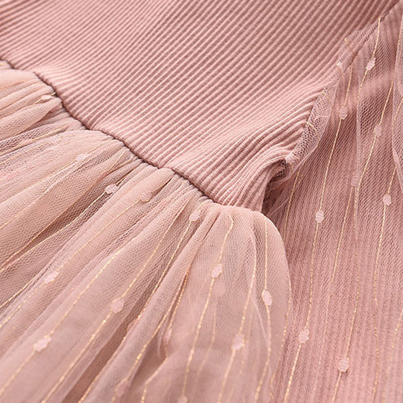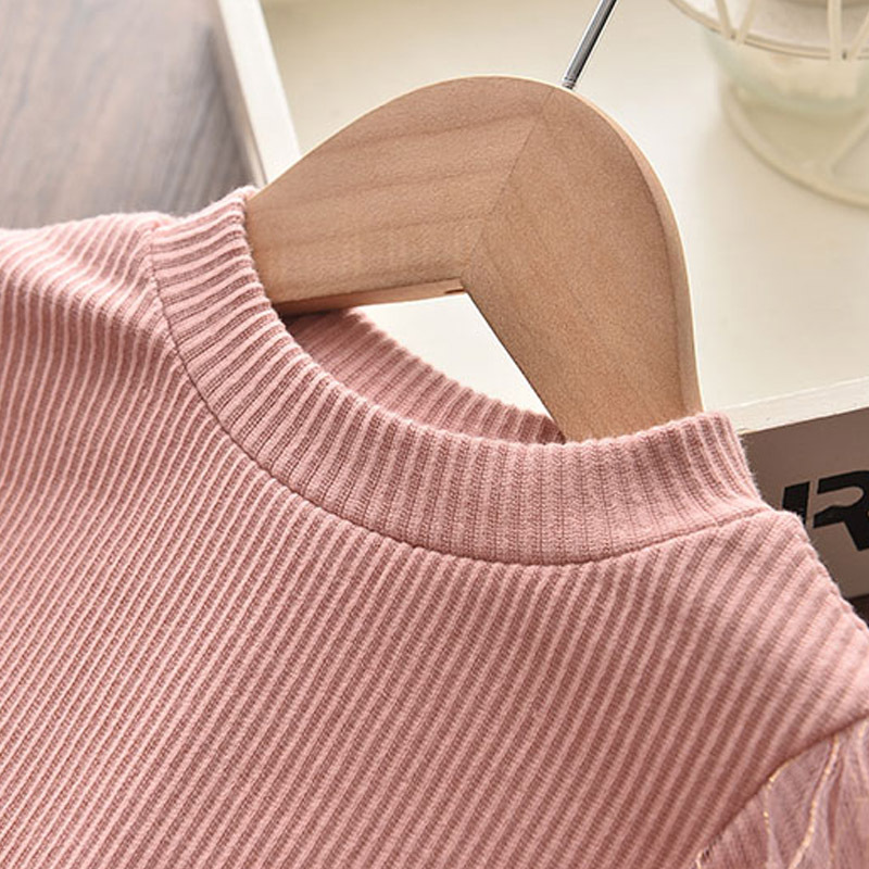 가을 새 여아 긴팔 원피스 여아 세련된 스팽글 퍼프 소매 니트 베일 스커트 어린이 스커트