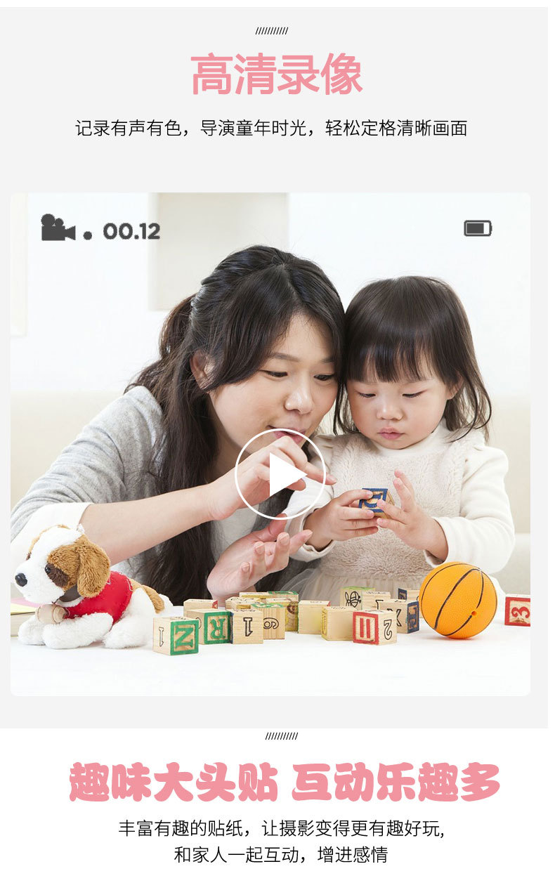 • Z12 핑크 카메라 + 인쇄 용지 3롤 + 끈 + 색연필