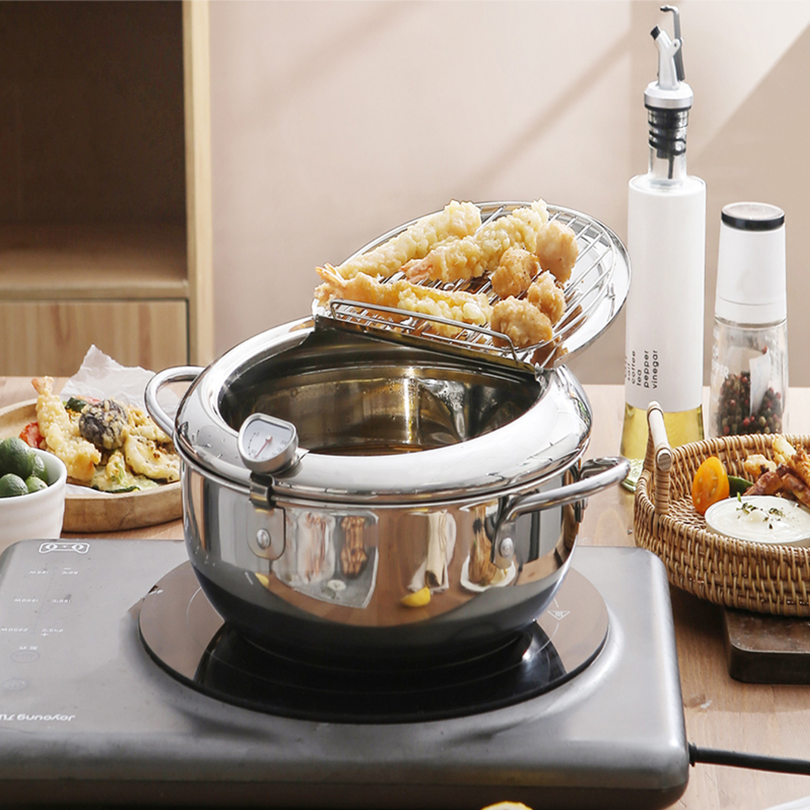 국경 간 무역 아마존 튀김기 무코팅 일본식 튀김기 오일 필터 랙 온도계 포함 친환경스토어 가기