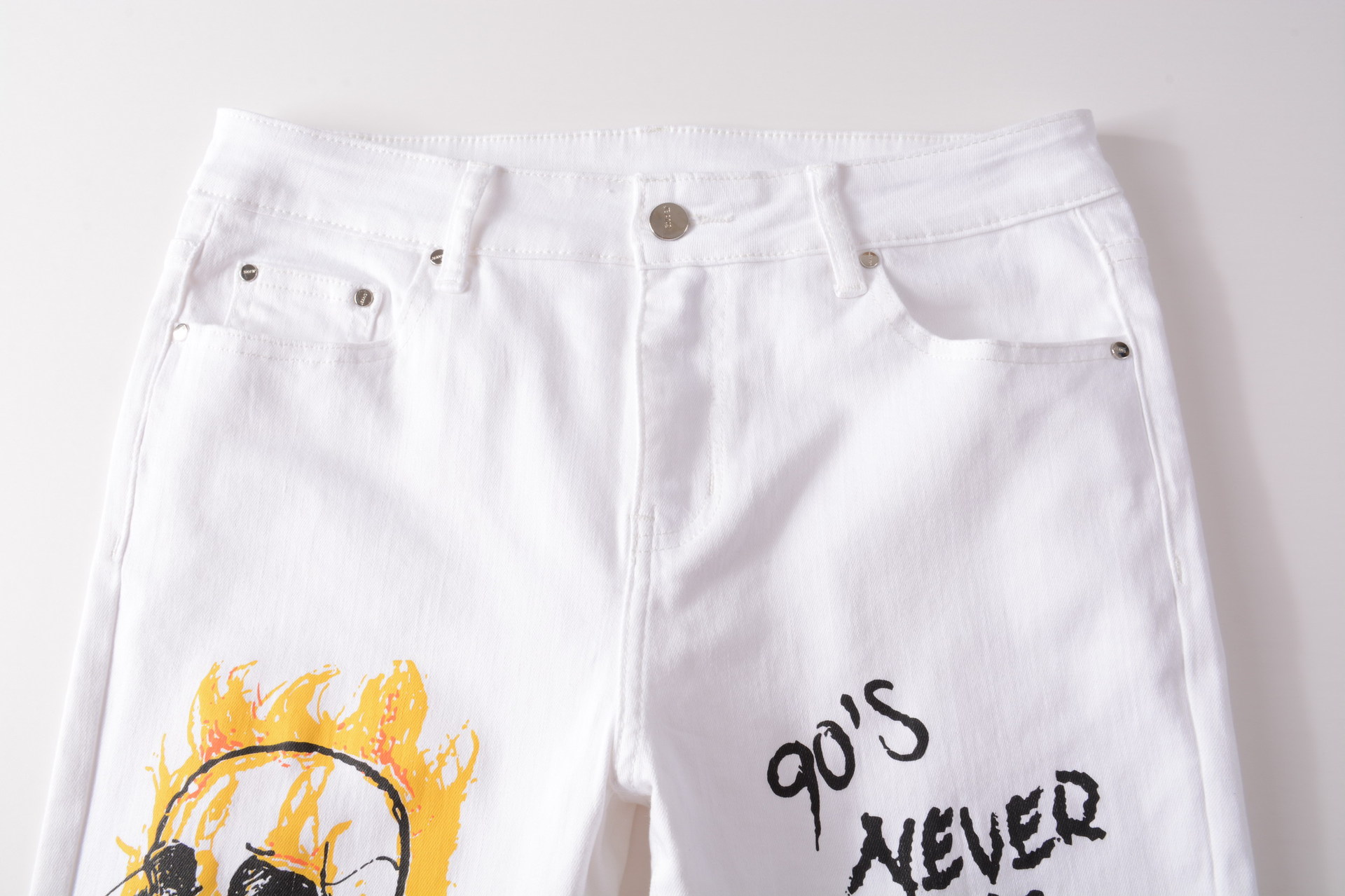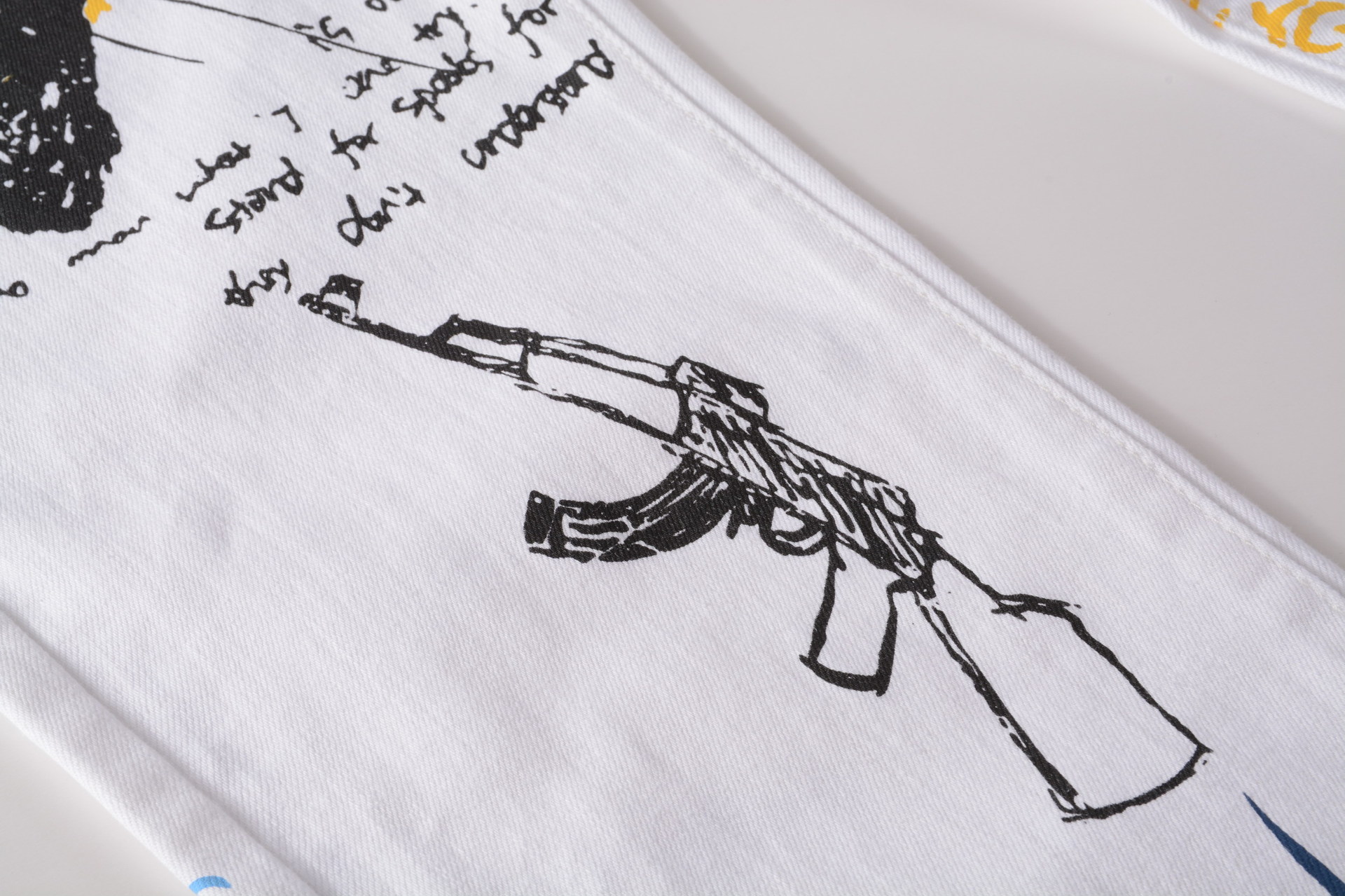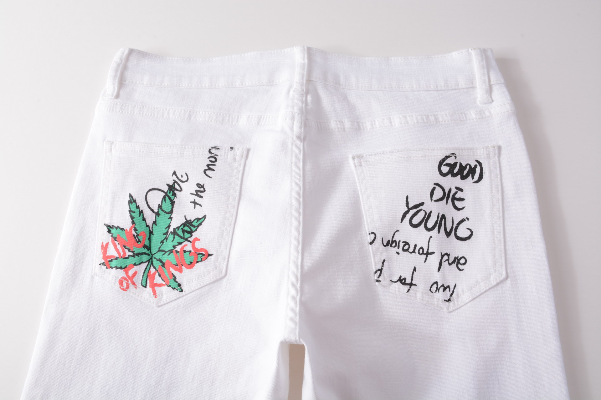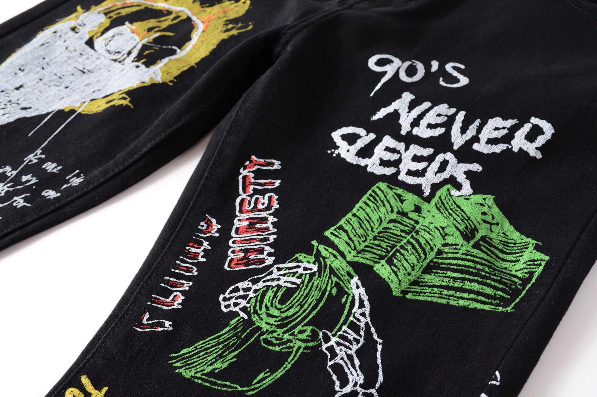 트렌디 한 브랜드 하이 스트리트 남성용 스트레치 슬림 3D 컬러 인쇄 블랙 화이트 바지 해골 낙서 거리 트렌디 한 남성 청바지스토어 가기