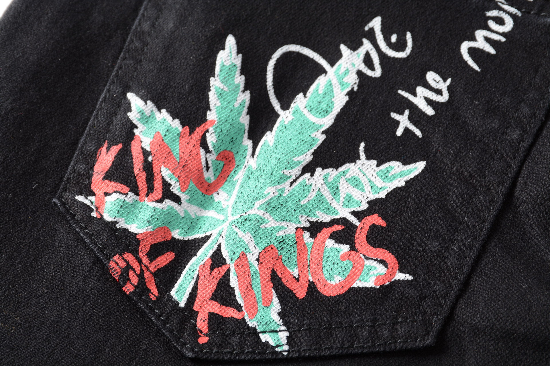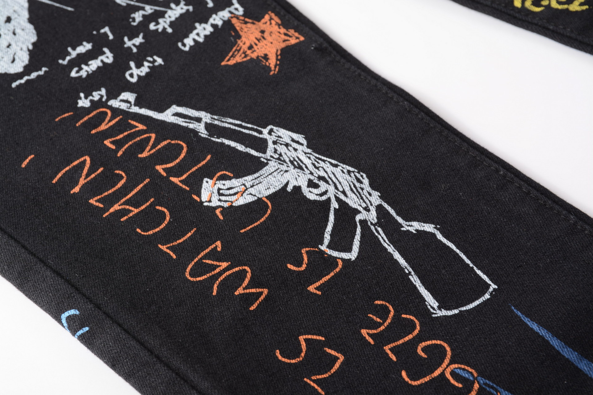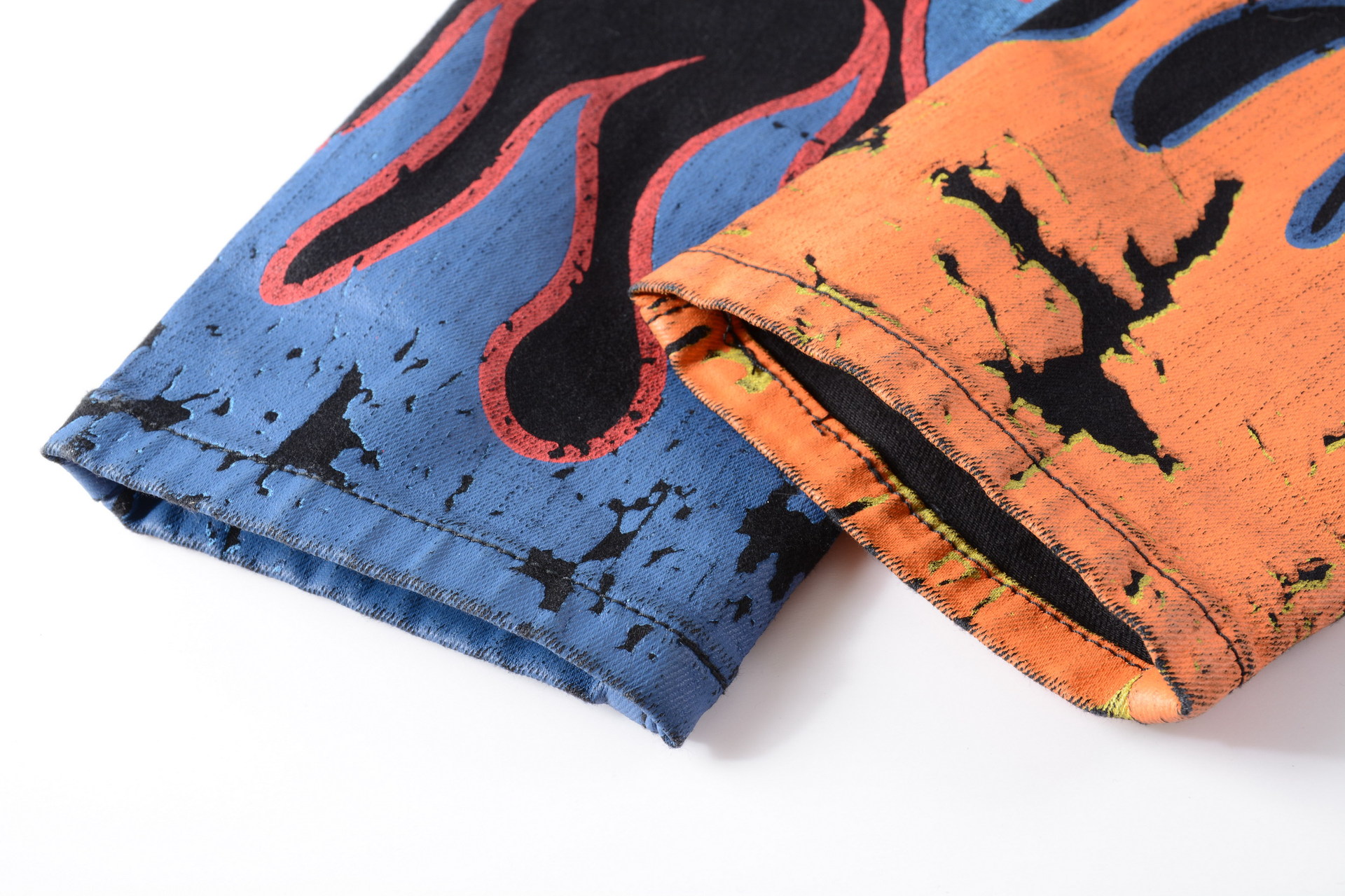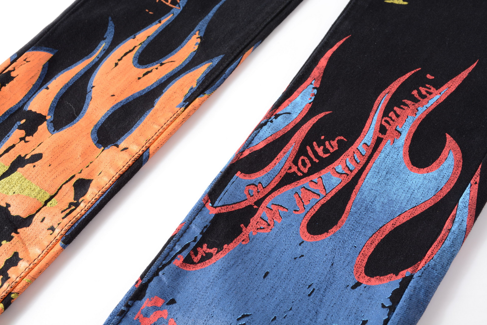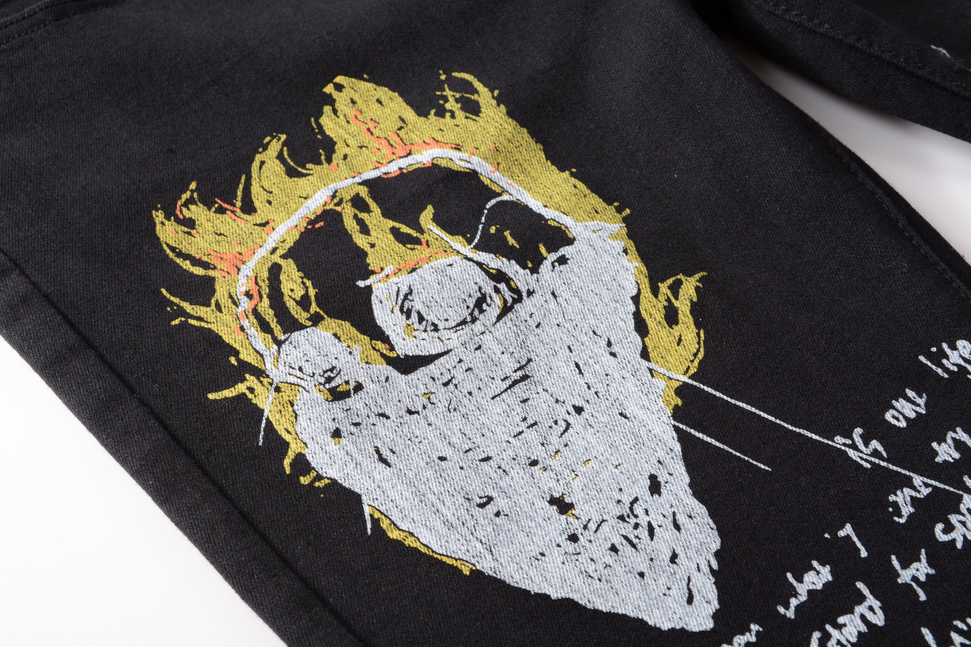 트렌디 한 브랜드 하이 스트리트 남성용 스트레치 슬림 3D 컬러 인쇄 블랙 화이트 바지 해골 낙서 거리 트렌디 한 남성 청바지스토어 가기
