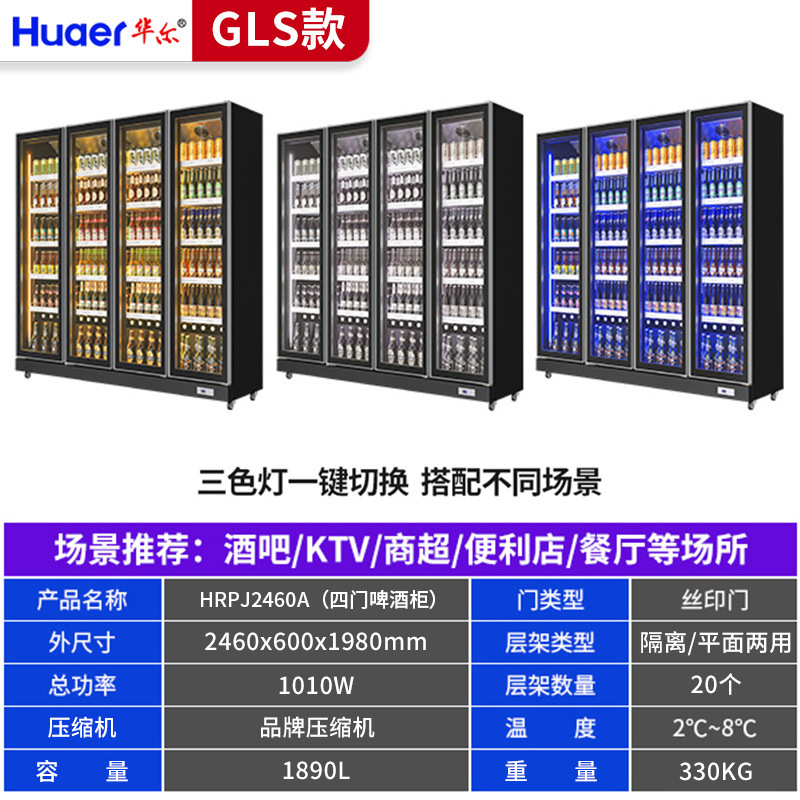 华尔冰柜烧烤店冷藏柜立式酒吧展示柜冰箱商用三门饮料柜啤酒柜