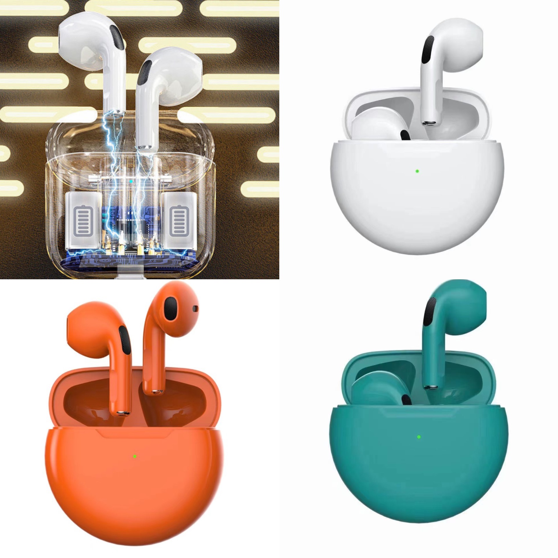 Pro4 4 세대 pro6 블루투스 헤드셋 소음 감소 AIRmini 무선 tws 스포츠 6 세대 pro5 J6 녹색 조명
