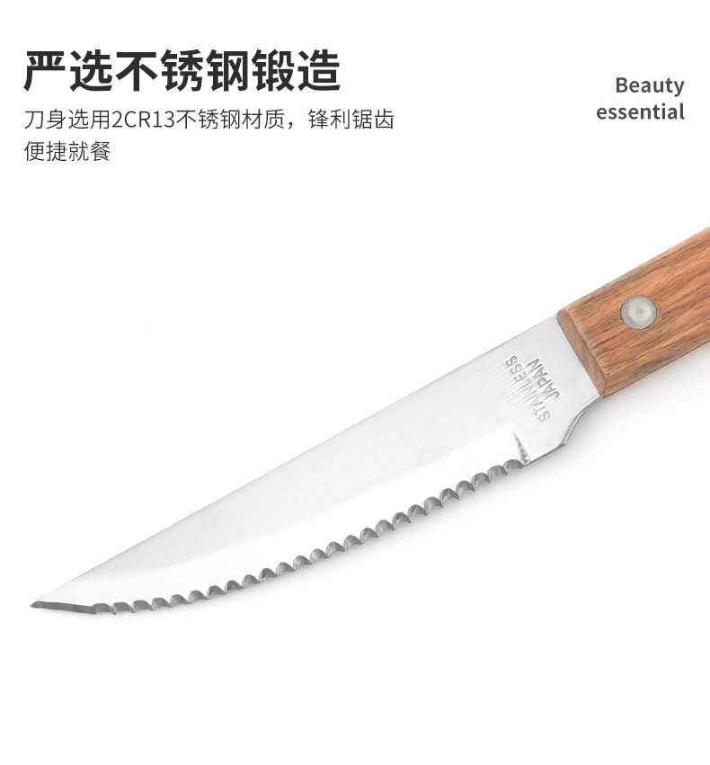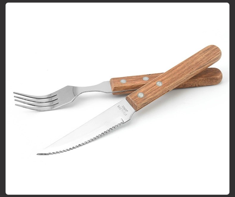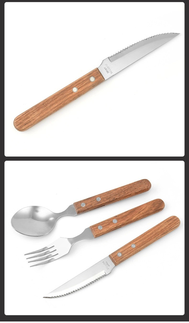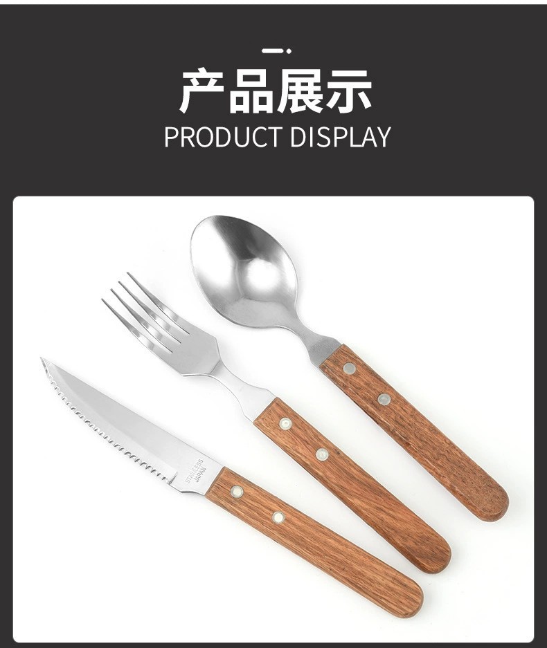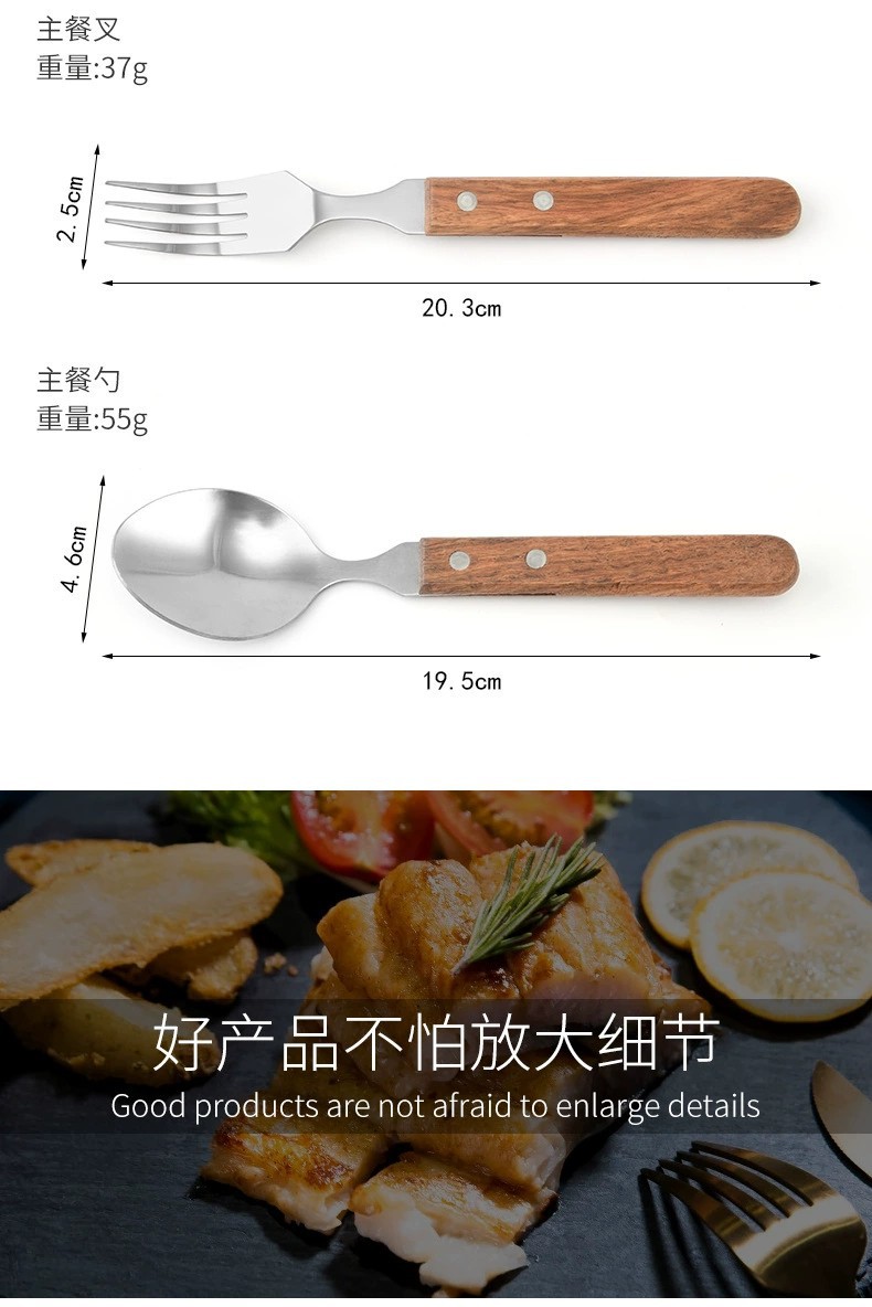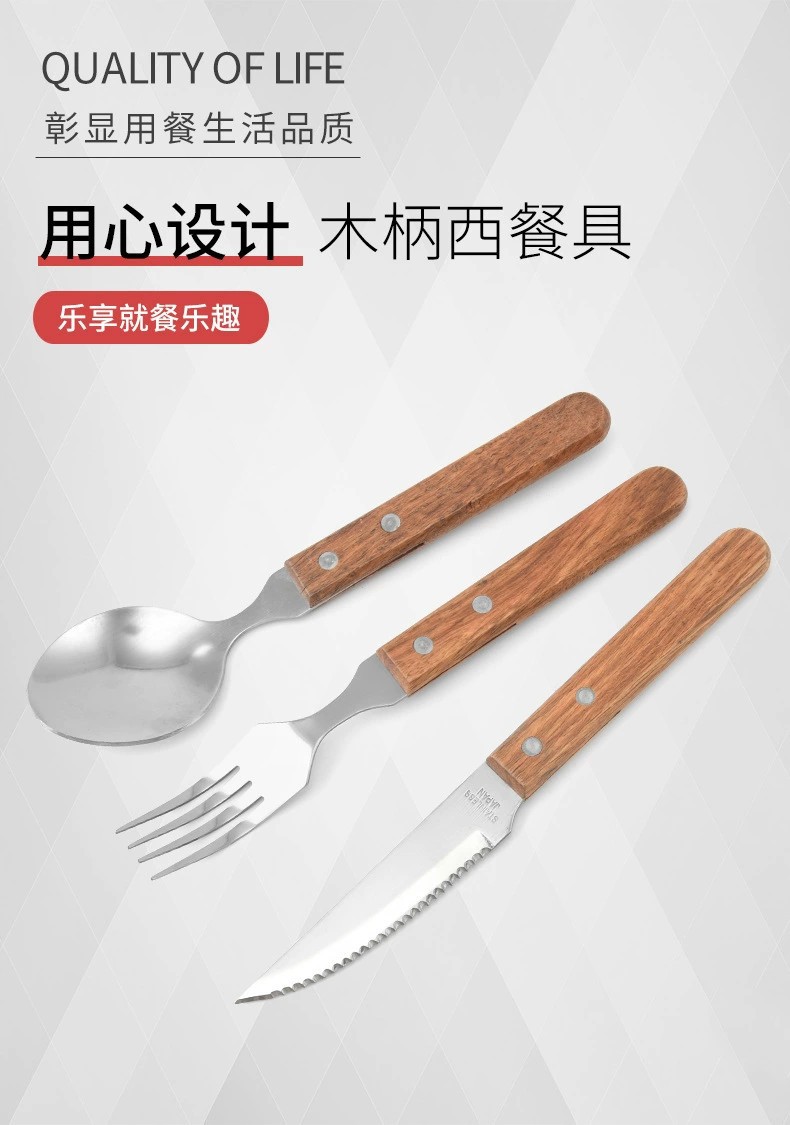 공장 도매 화이트 펄 우드 손잡이 스테이크 나이프, 포크, 스푼 서양식 식기 세트 스테인리스 서양식 식기스토어 가기