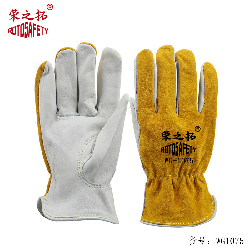 짧은 암소 녹색 가죽 암소 2 층 암소 가죽 용접 장갑 단열 용접기 용접 보호 장갑