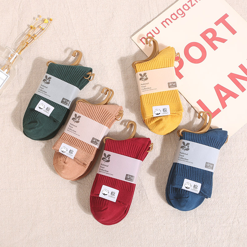 가을과 겨울 더블 바늘 양말 숙녀 면화 양말 컬러 튜브 양말 캔디 컬러 캐주얼 숙녀 두꺼운면 양말 도매