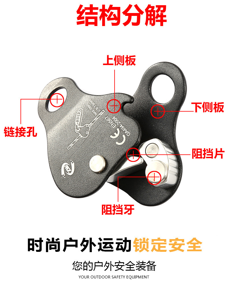 1.可开启凸轮式,人体工程设计,设计用于提拉系统或防回跑