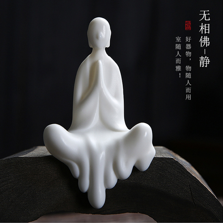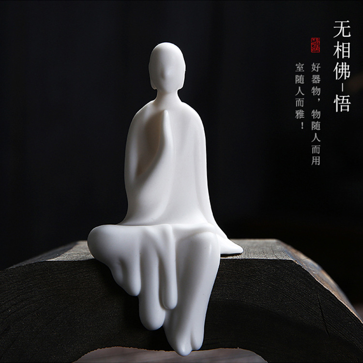 백색 도자기 비 위상 작은 불상 가정용 세라믹 캐릭터 작은 승려 보석 창조적 인 중국 선 스타일 역류 향로 장식품스토어 가기