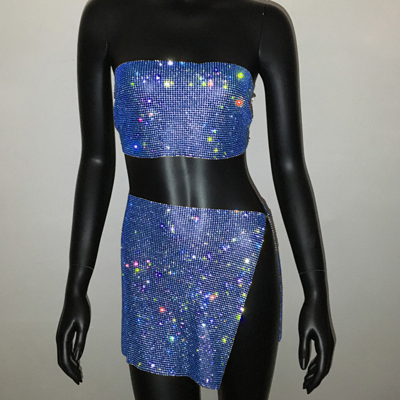 국경 간 폭발 유럽과 미국 여성의 금속 모조 다이아몬드 탑 스커트 세트 섹시한 나이트 클럽 파티 핫 걸 모조 다이아몬드 스커트스토어 가기