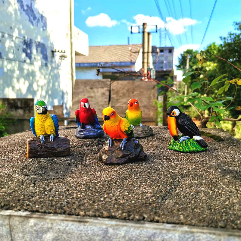 수지 공예 창조적 인 동물 시뮬레이션 호랑이 피부 Xuan Feng 앵무새 새 장식품 가짜 새 정원 안뜰 장식