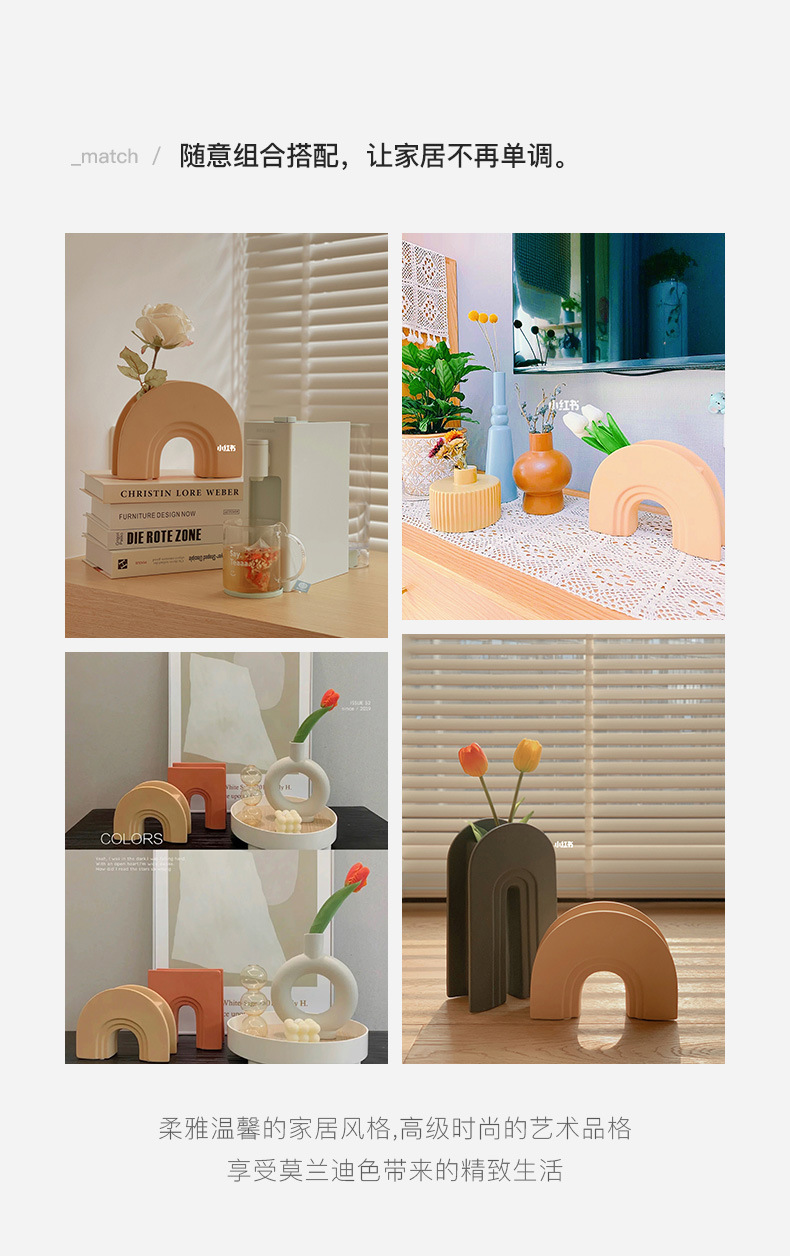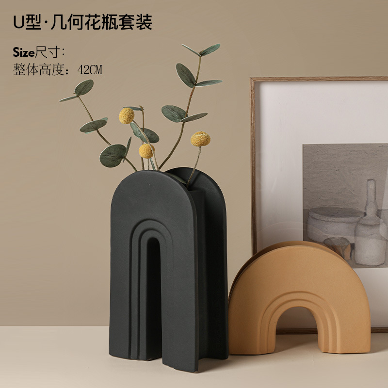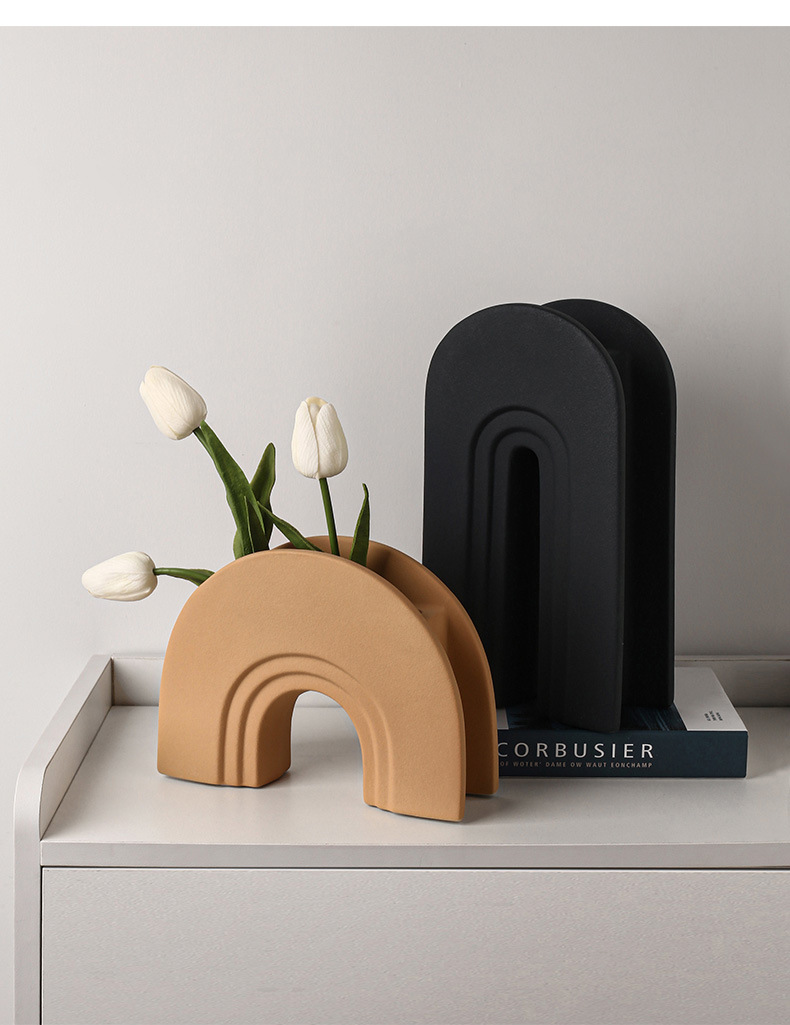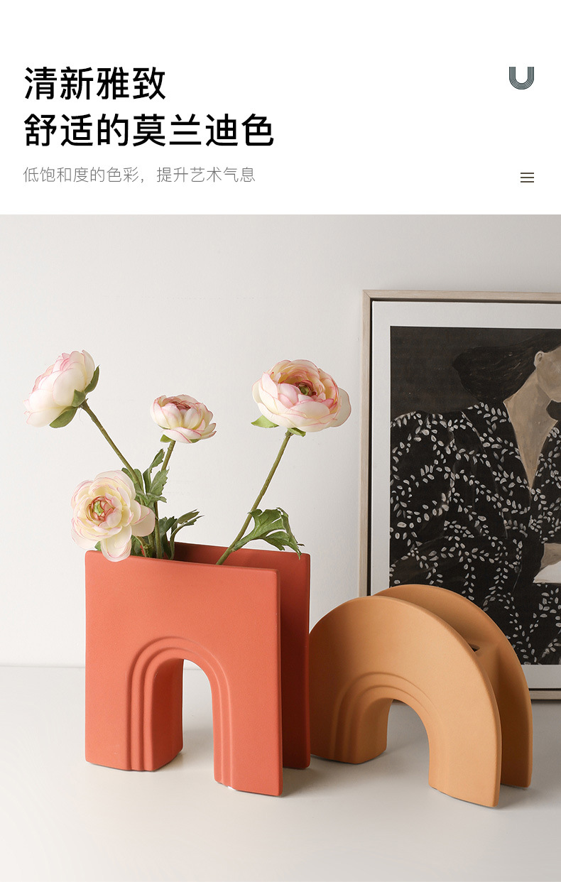 Behanmei 크리 에이 티브 북유럽 모란디 아치 꽃병 장식품 거실 꽃꽂이 TV 캐비닛 장식 크로스 보더 핫스토어 가기