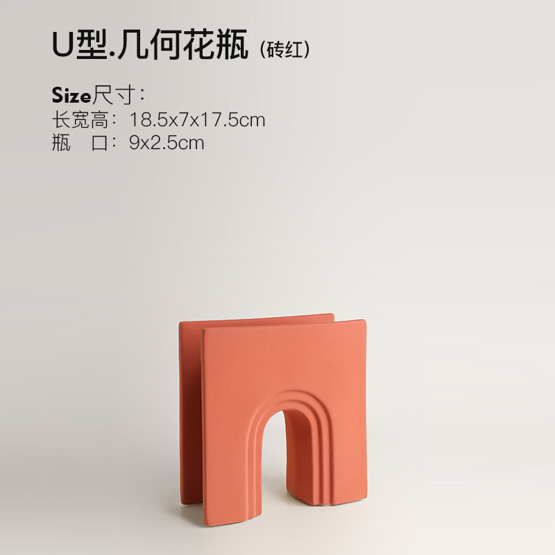 • U 자형 기하학적 꽃병-벽돌 빨강