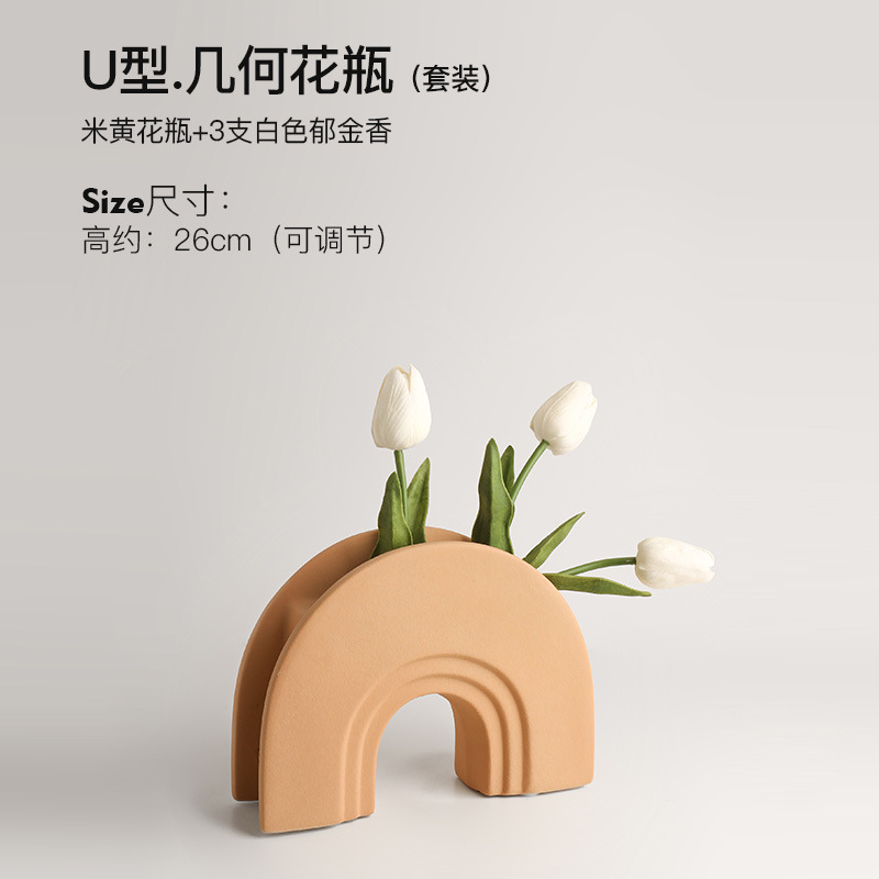 • U 자형 기하학적 꽃병 (베이지) + 3 튤립 [세트 가격]
