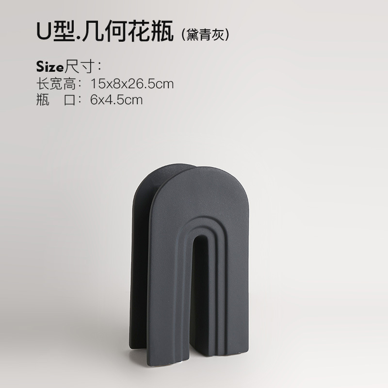 • U 자형 기하학적 꽃병-다이칭 회색 꽃 세트