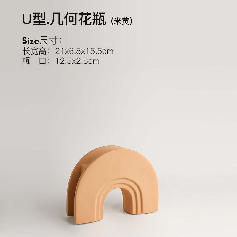 • U 자형 기하학적 꽃병-베이지