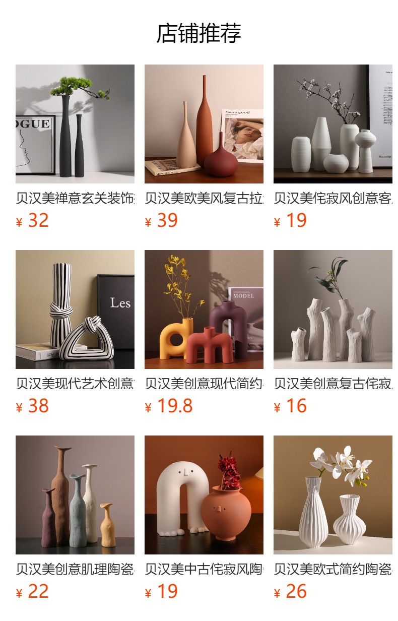 Beihan Meijing Dezhen 크리에이티브 세라믹 브러시 꽃병 고급 거실 공예 간단한 꽃병 장식품 도매스토어 가기