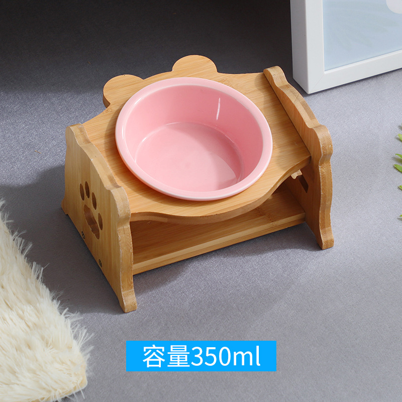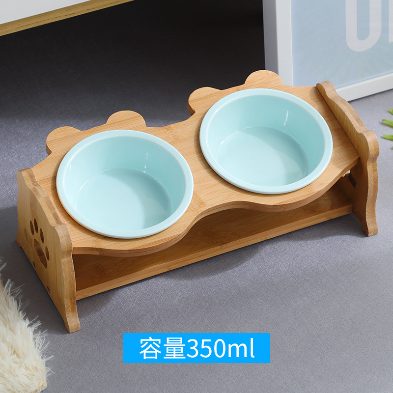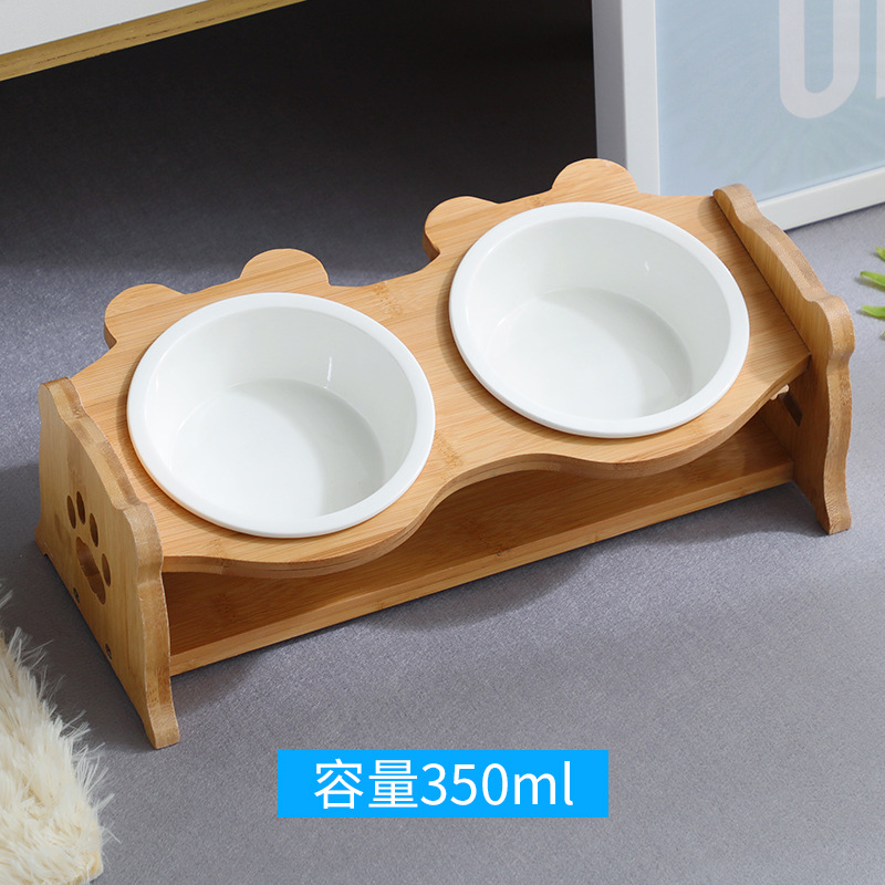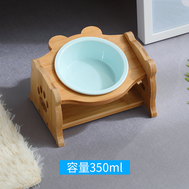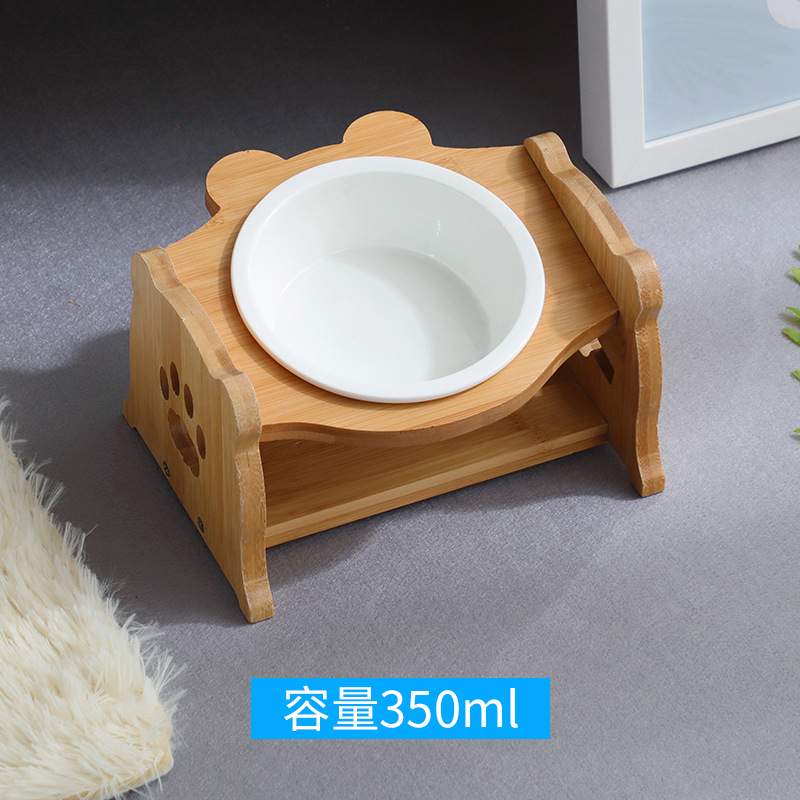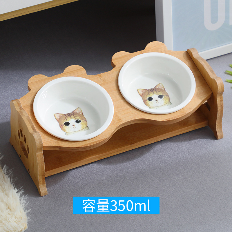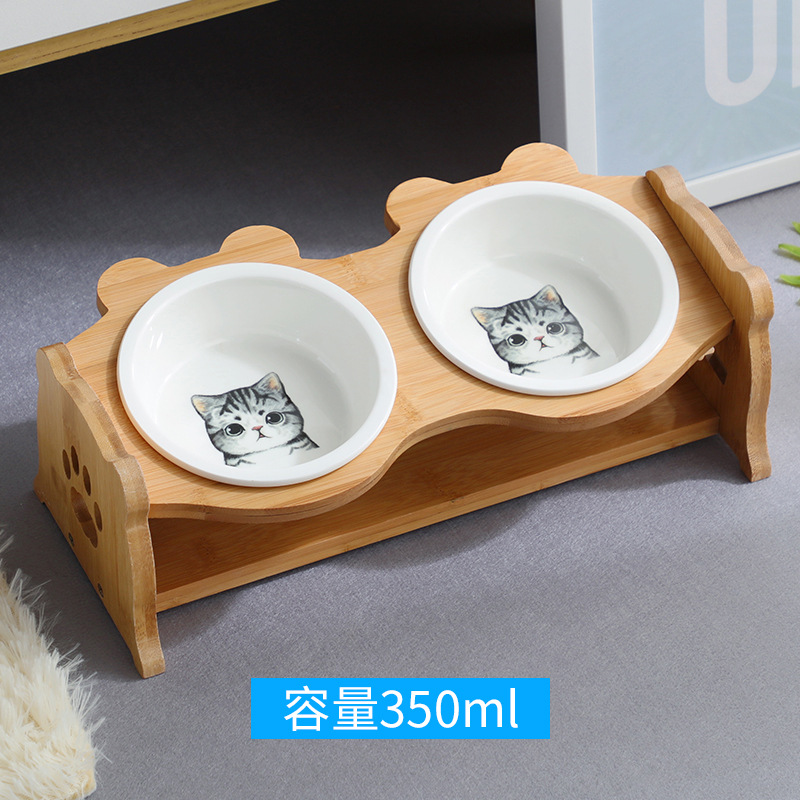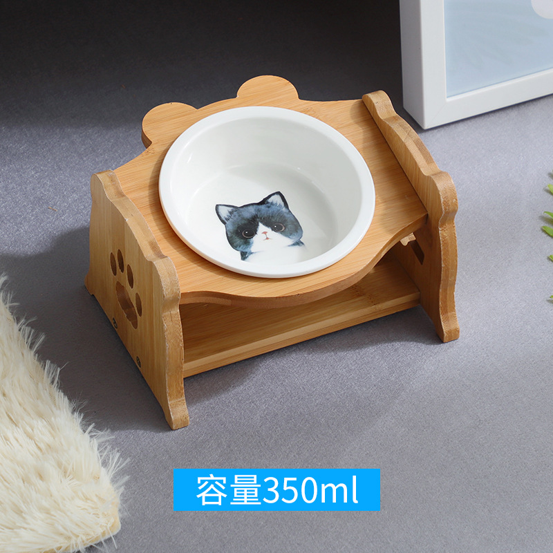 고양이 그릇 노크 방지 목 보호 세라믹 고양이 먹이 그릇 새끼 고양이 대나무 조절 개 그릇 고양이 분지 기울기 안티 블랙 턱스토어 가기