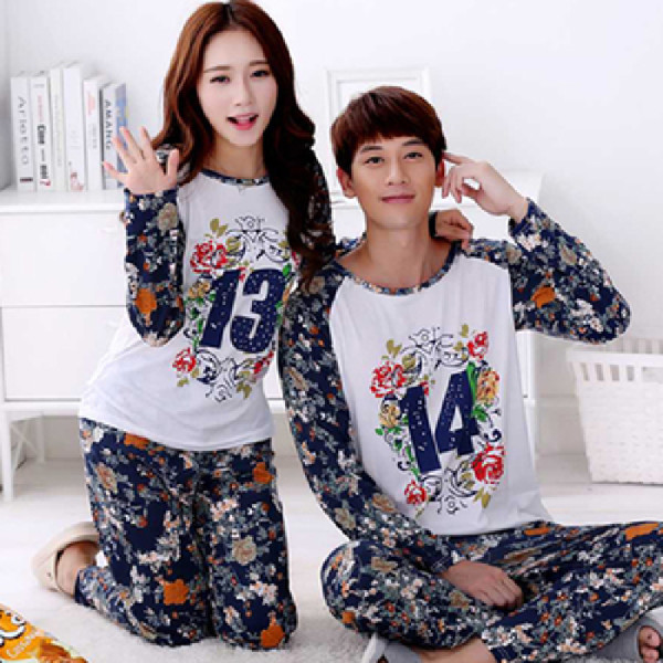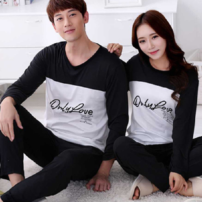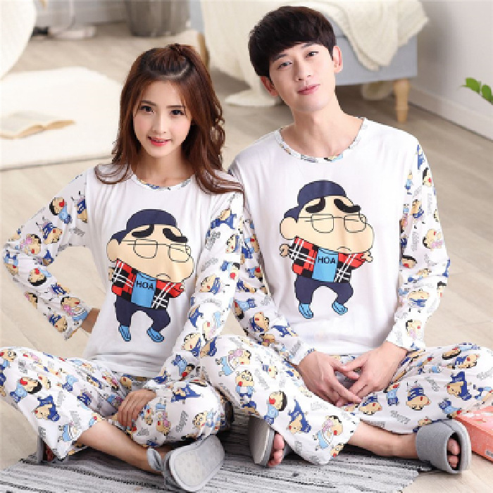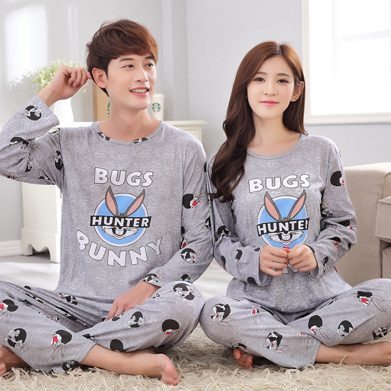 잠옷 봄 가을과 겨울 남자와 여자 커플 플러스 사이즈 느슨한 긴 소매 바지 커플 세트 남자의 세트 여자스토어 가기