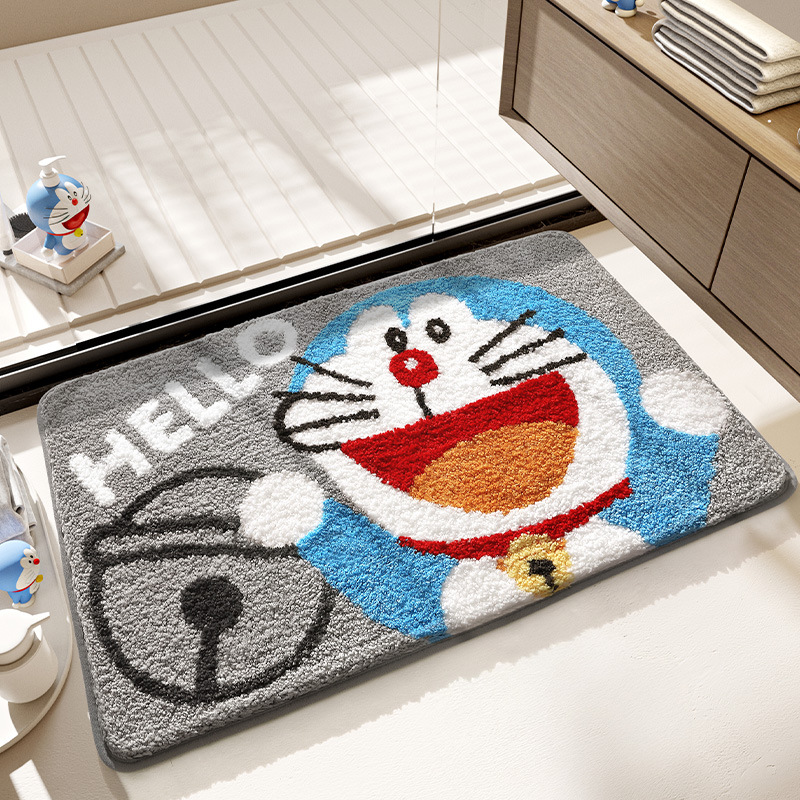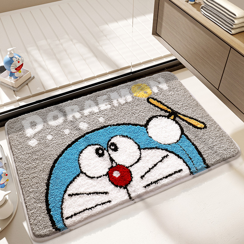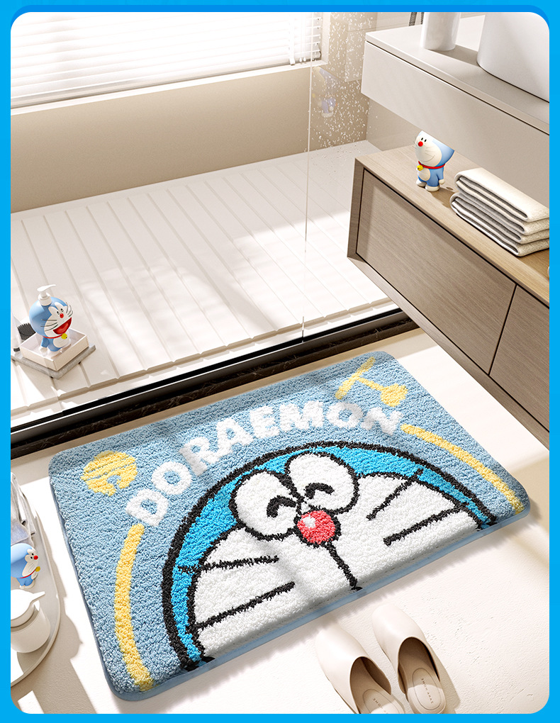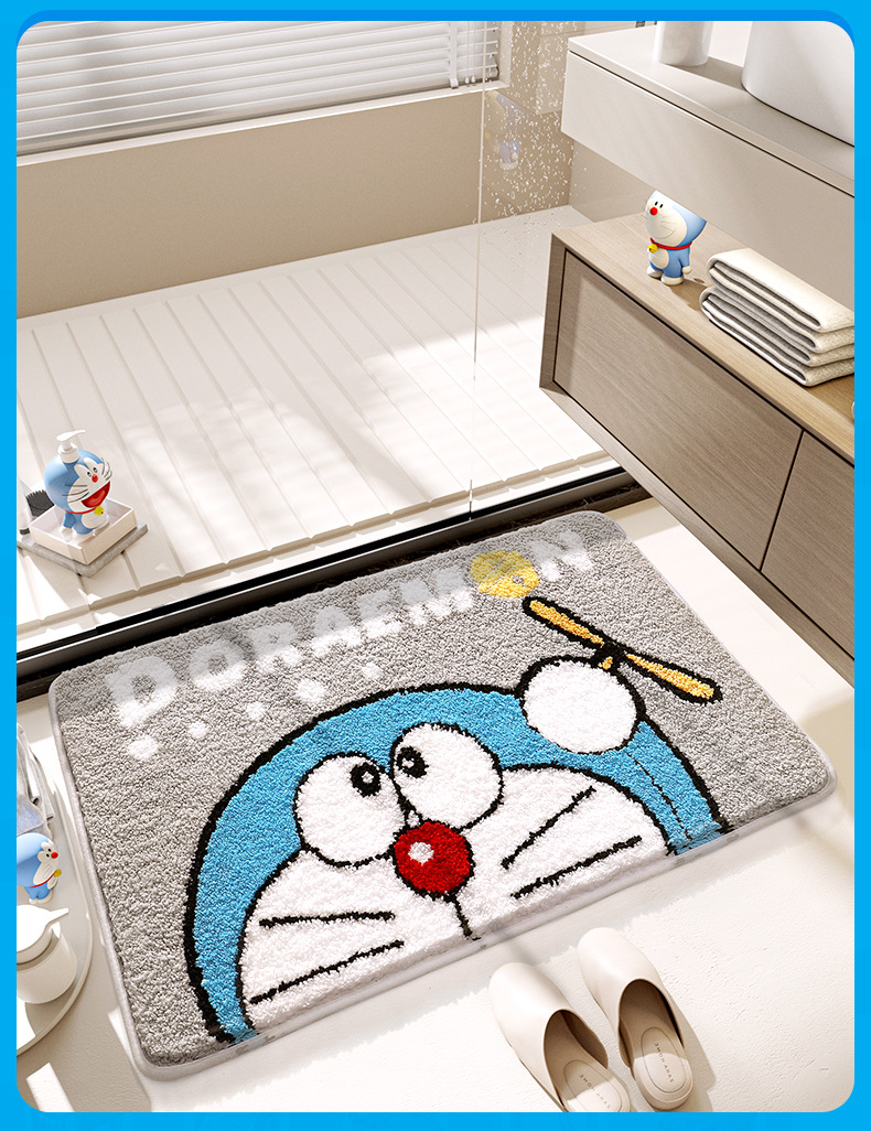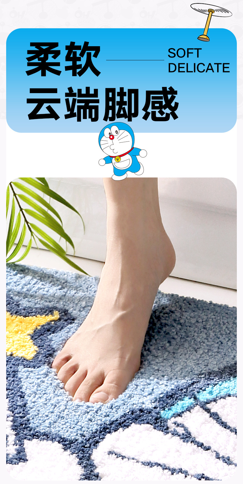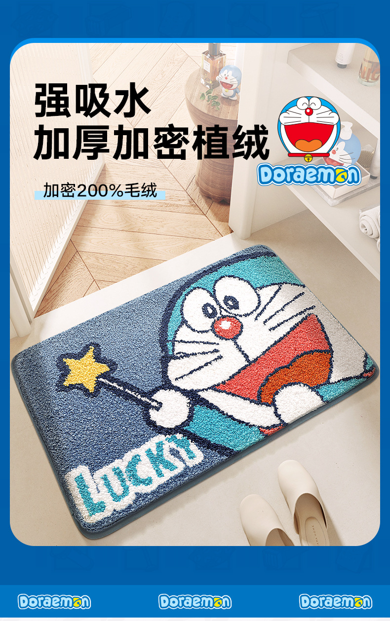 도라에몽 플록 욕실 흡수 매트, 고밀도 자카드 미끄럼 방지 매트, 욕실 입구 발매트, 플록 매트